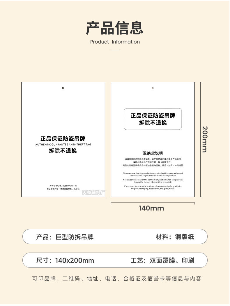 特大号防拆吊牌定制一次性防退货防拆标签服装挂牌卡logo吊卡定做