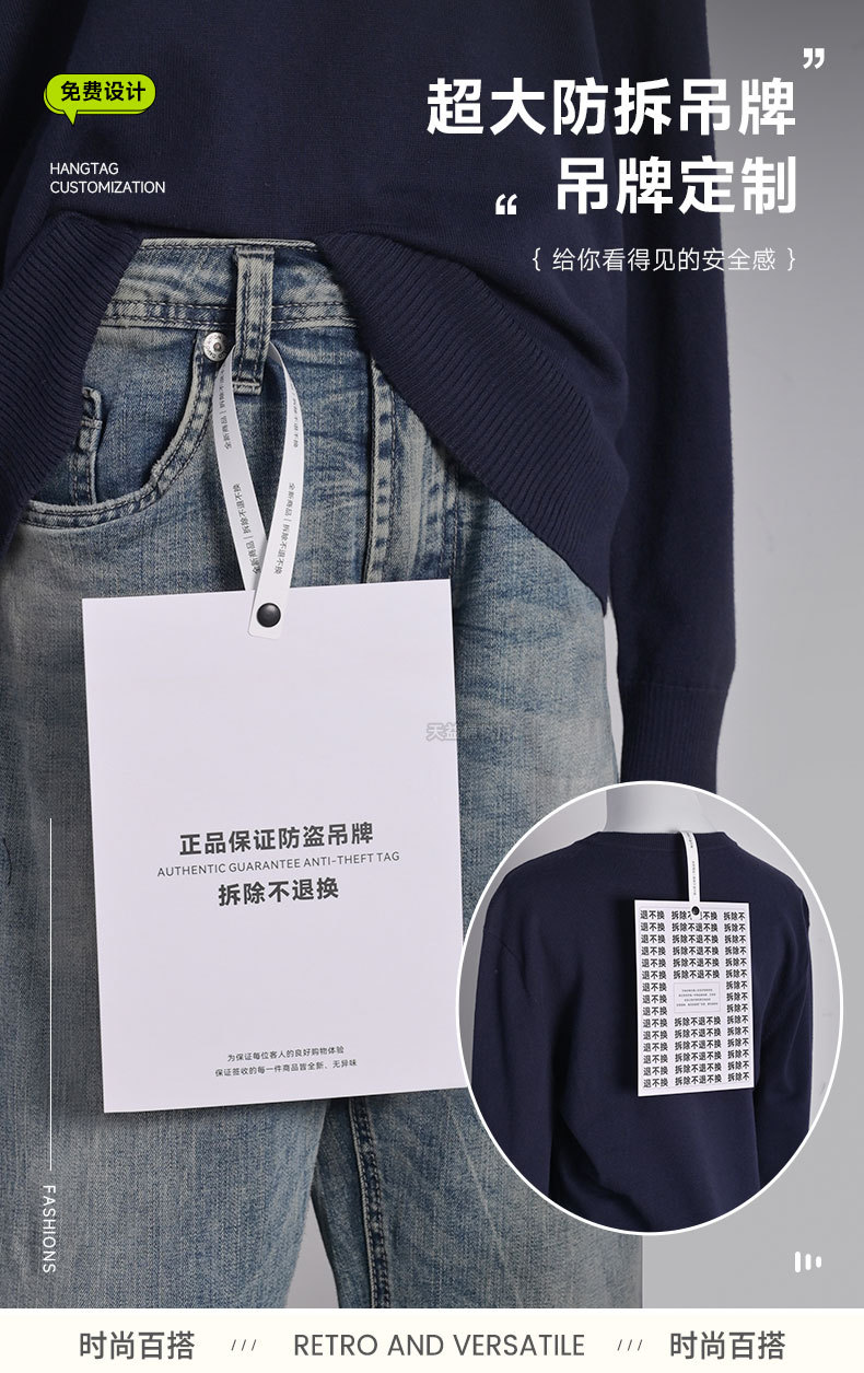 新款巨型特大号防拆扣服装吊牌定制防退货潮牌一次性衣服挂牌定做