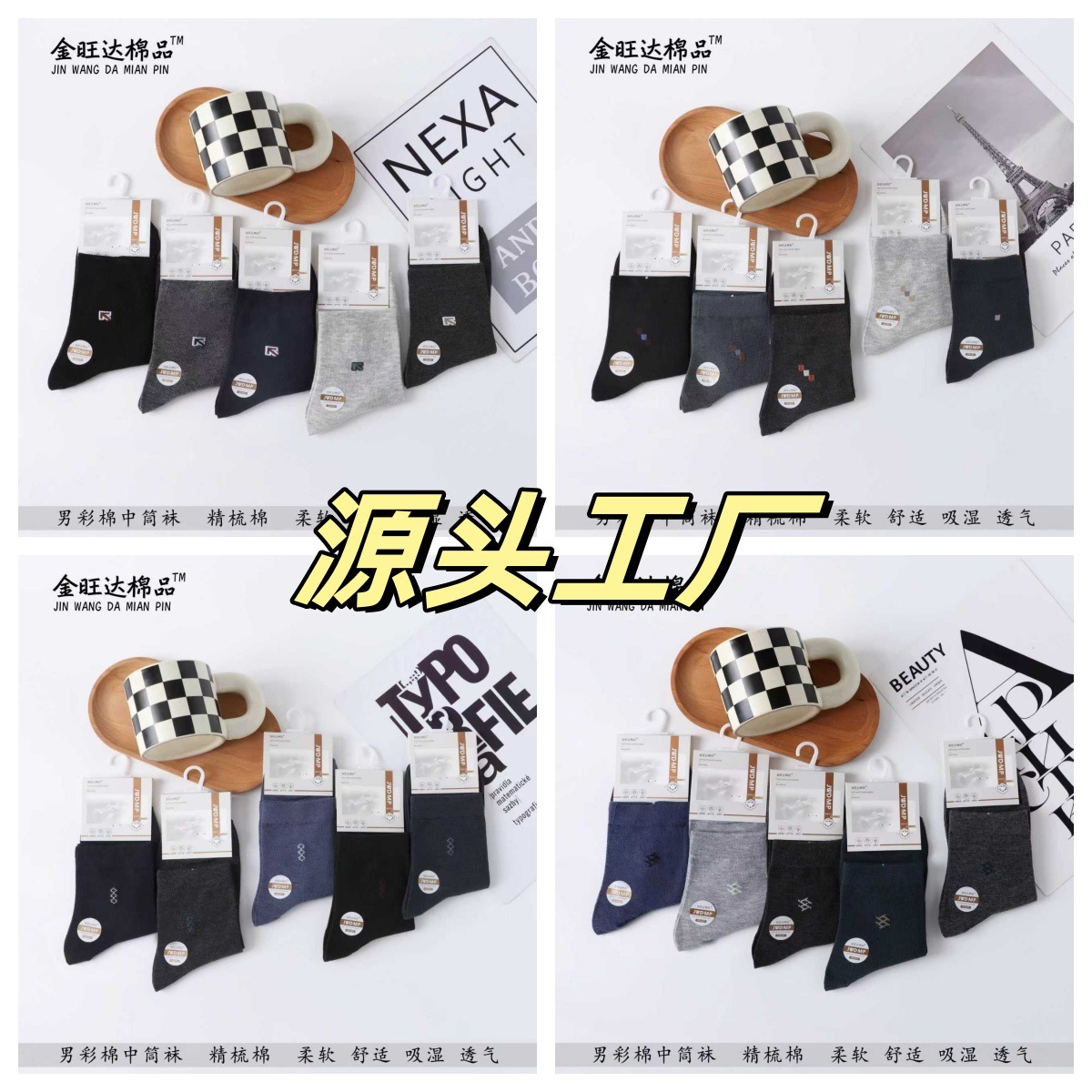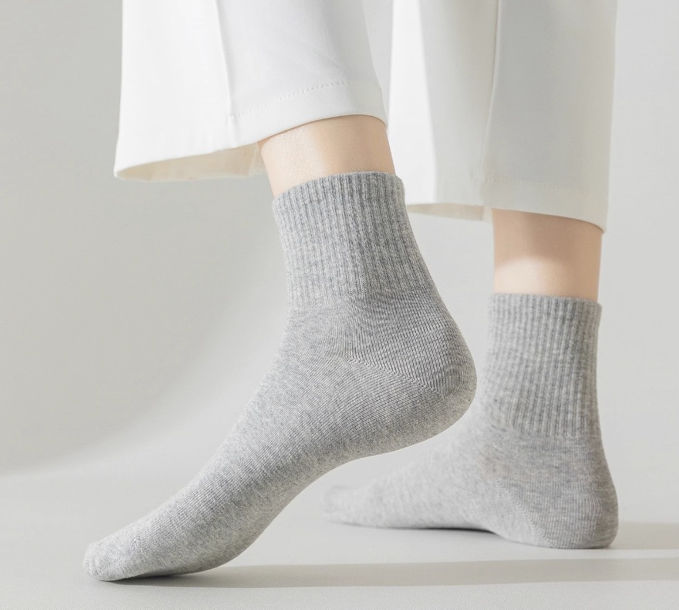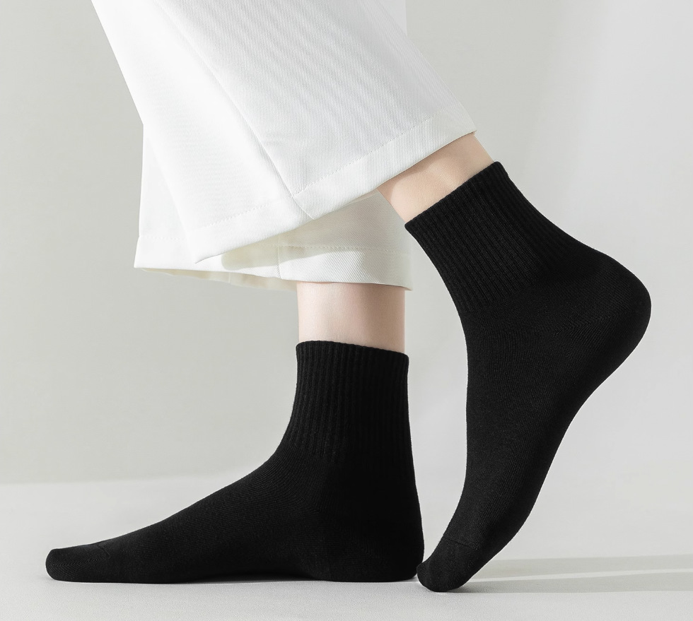 袜子男士独立包装秋冬中筒袜地摊诸暨男生袜纯色男棉袜
