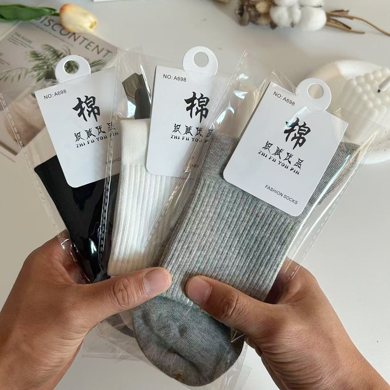 靴下メンズ個別包装秋冬ミッドカーフソックス露店卸売諸メーカーボーイズソックス無地メンズコットンソックス