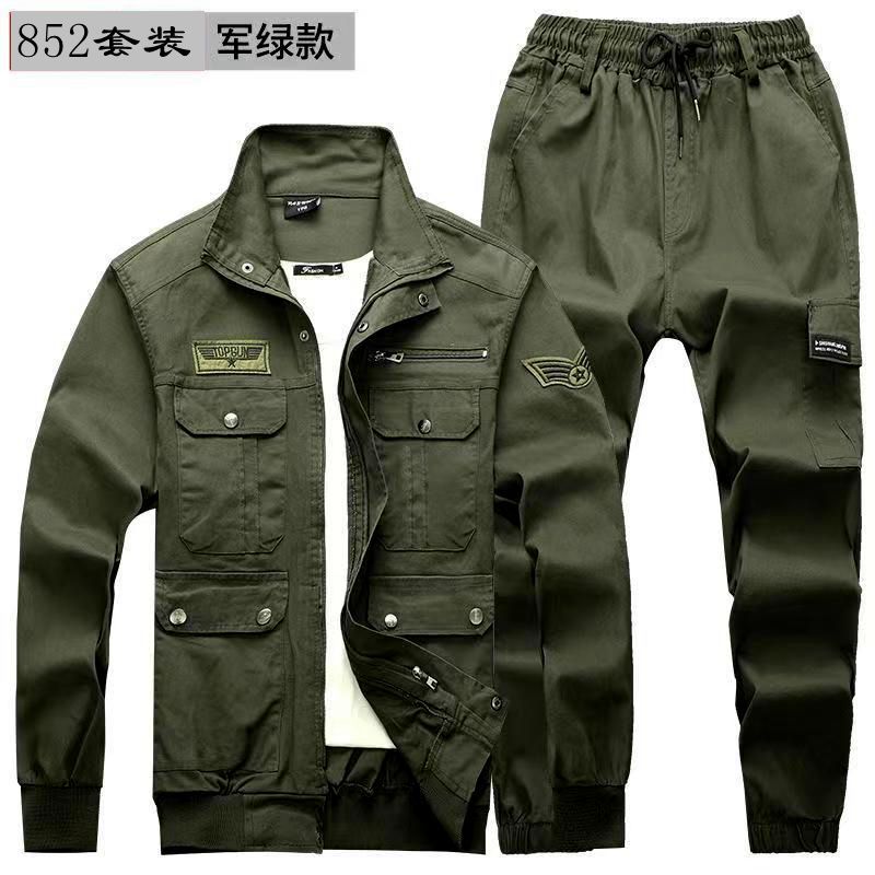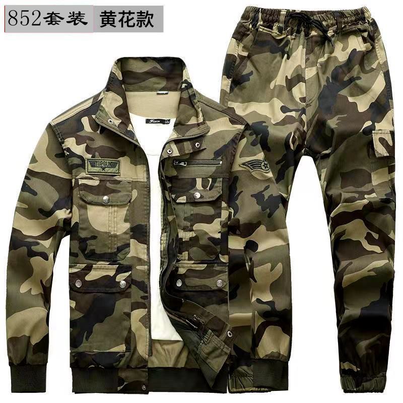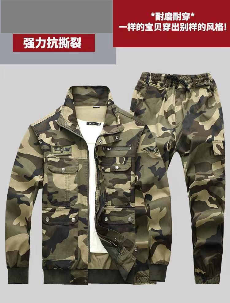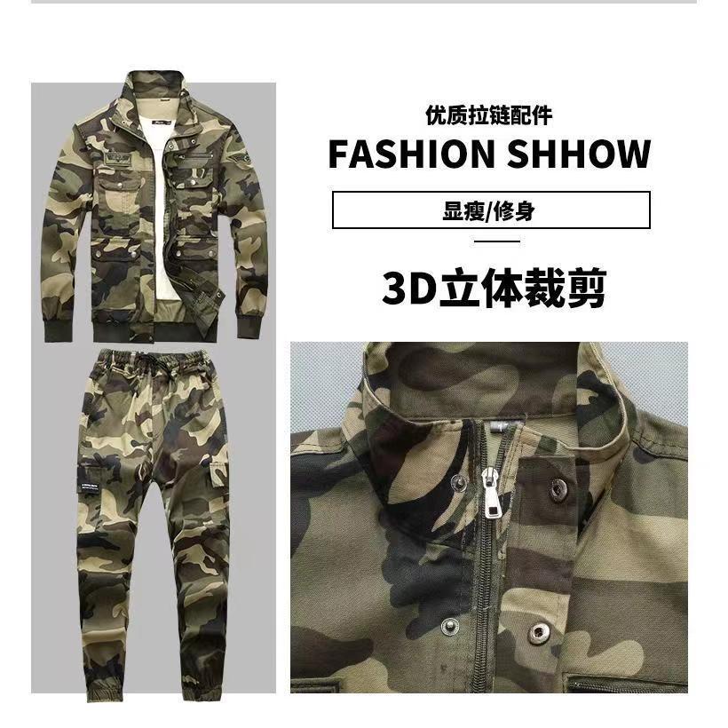弾力作業服セット男性純綿迷彩服労働保険服女性春秋トレーニング服カジュアル耐摩耗溶接