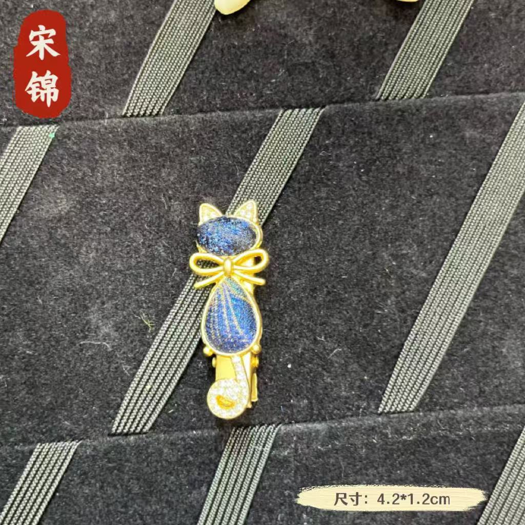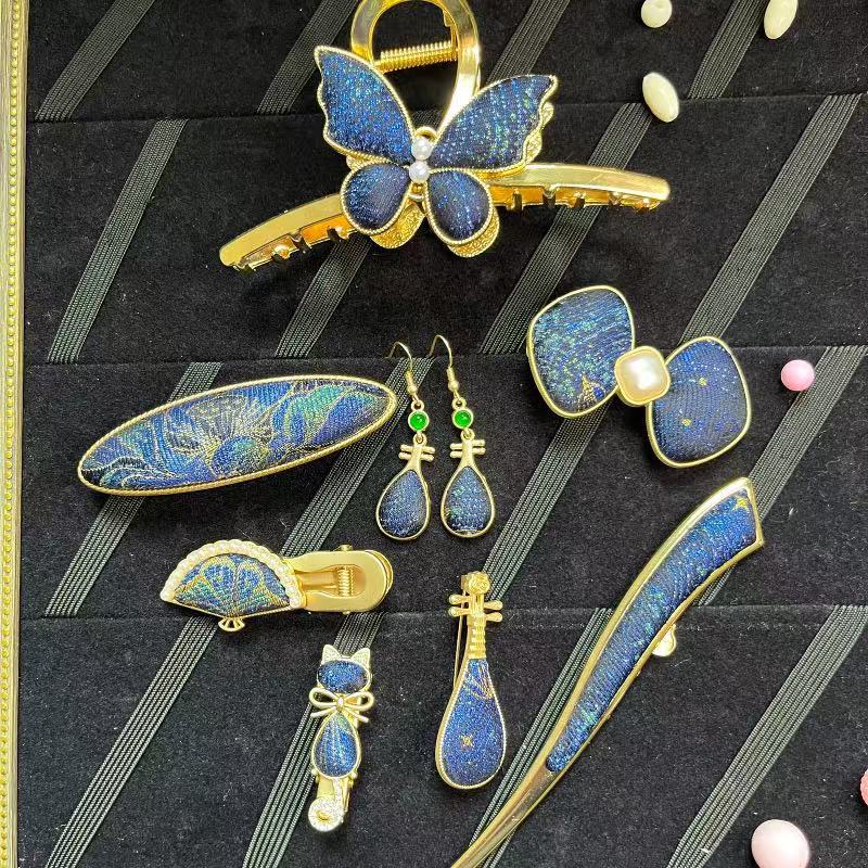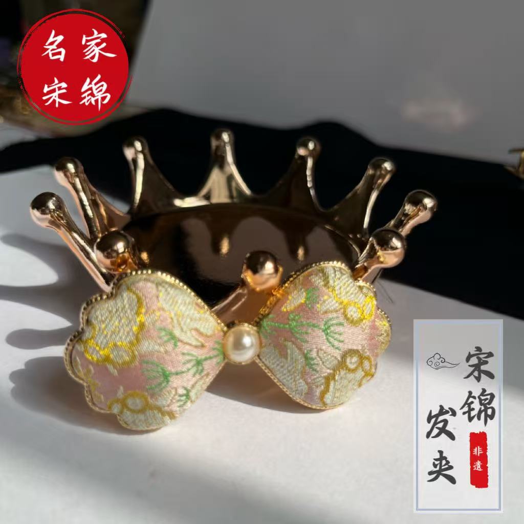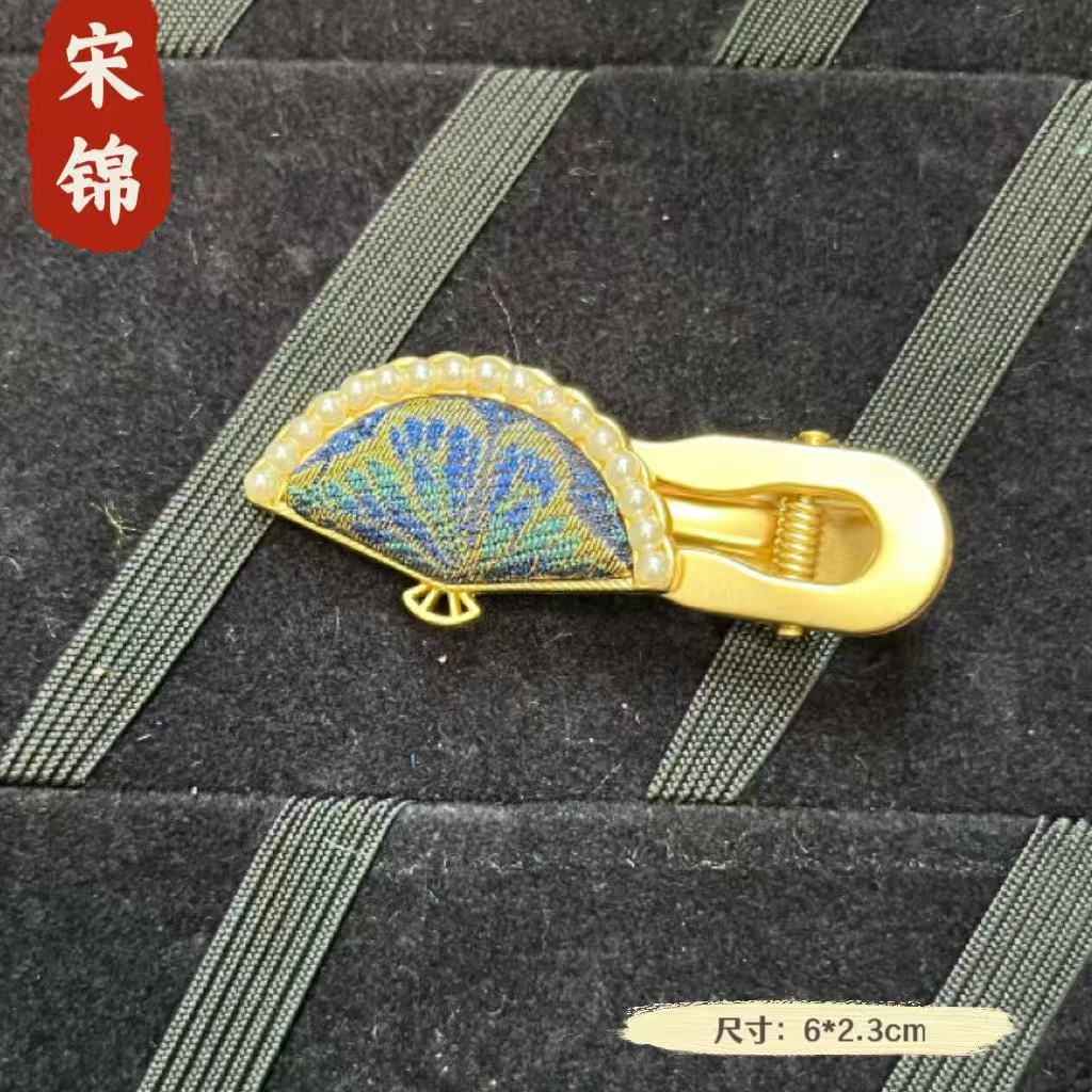 古风宋锦diy发夹 新中式国风发簪成品 纯手工鸭嘴夹边夹发饰