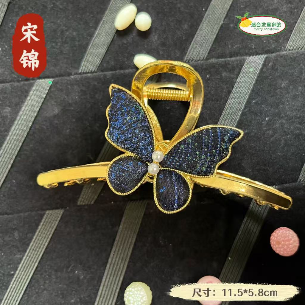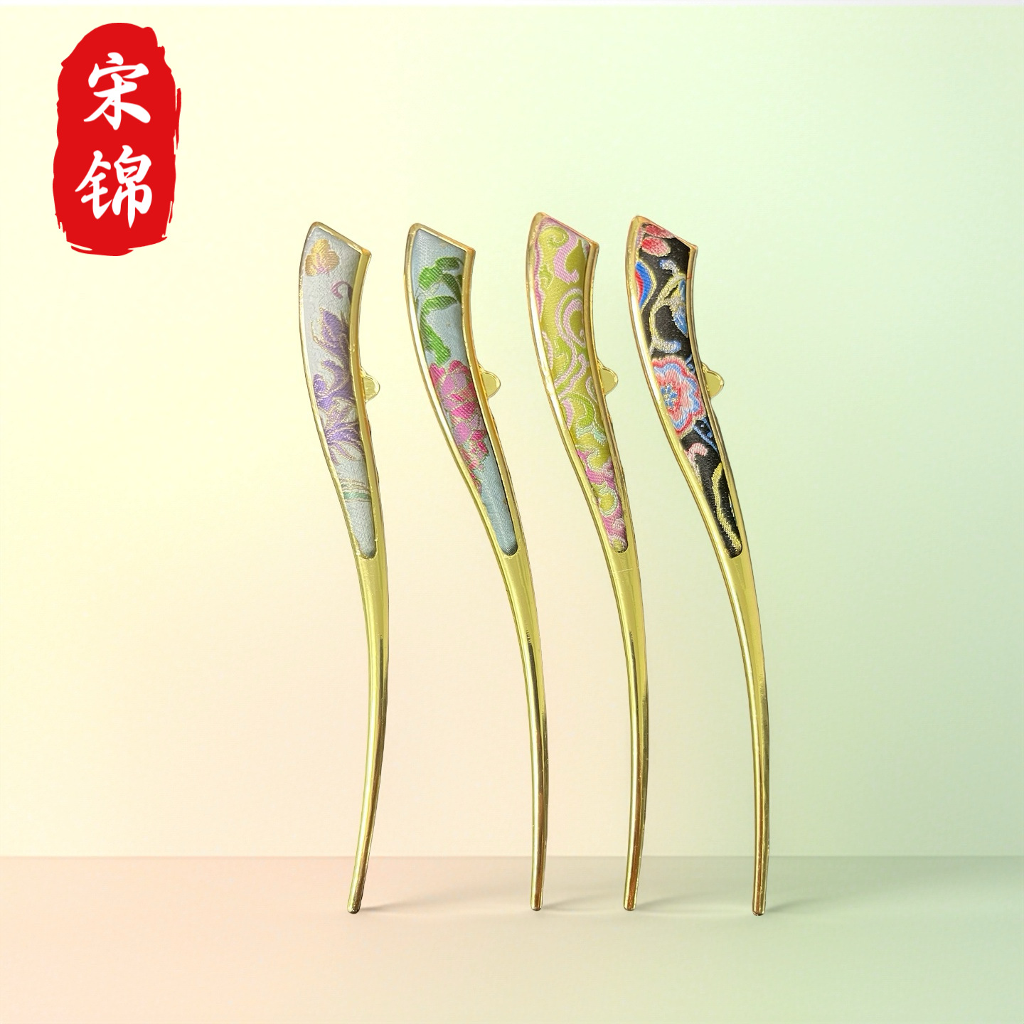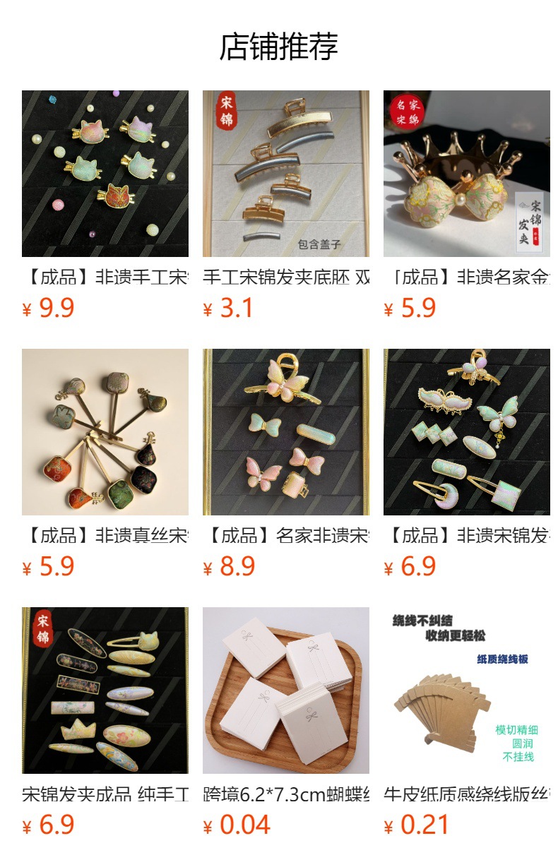 古风宋锦diy发夹 新中式国风发簪成品 纯手工鸭嘴夹边夹发饰