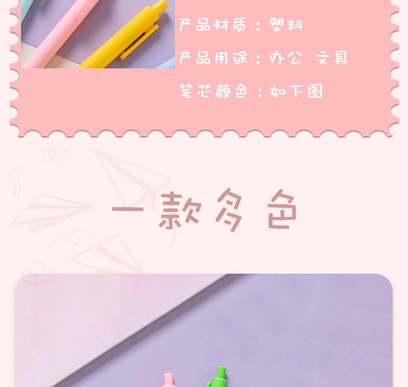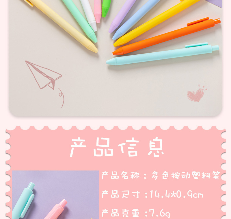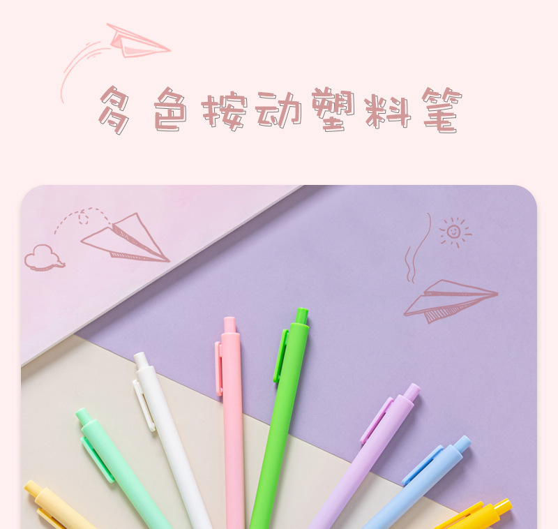 纯色按动圆珠笔塑料创意小清新马卡龙多色中性笔可印logo现货批发