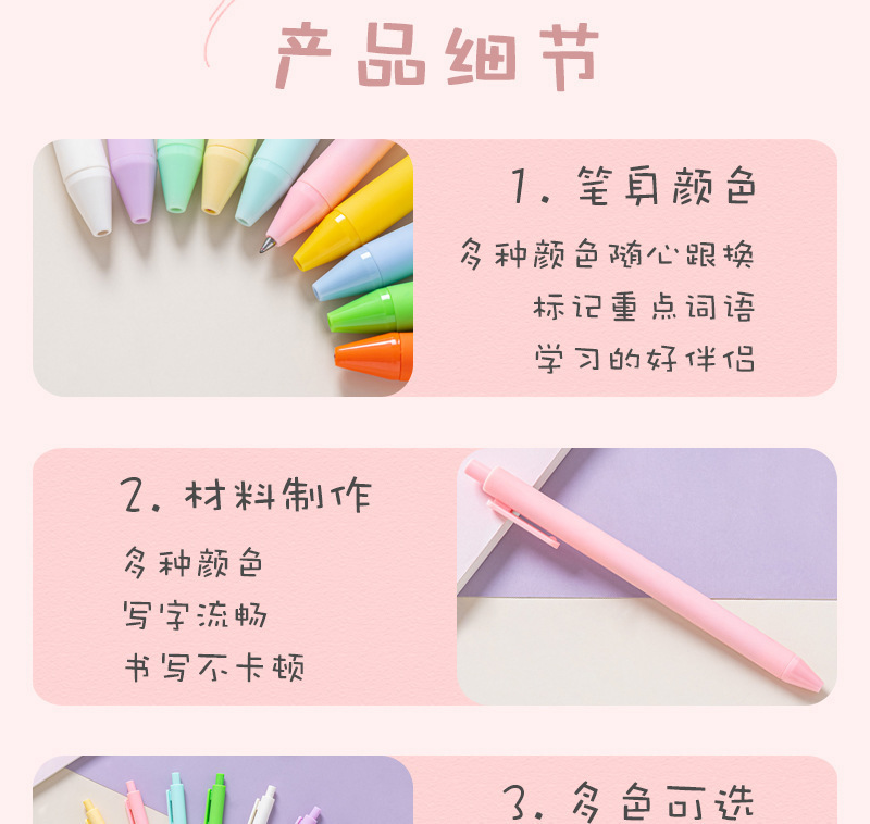 厂家现货马卡龙色系圆珠笔时尚高颜值中性笔顺滑不易断墨按动笔