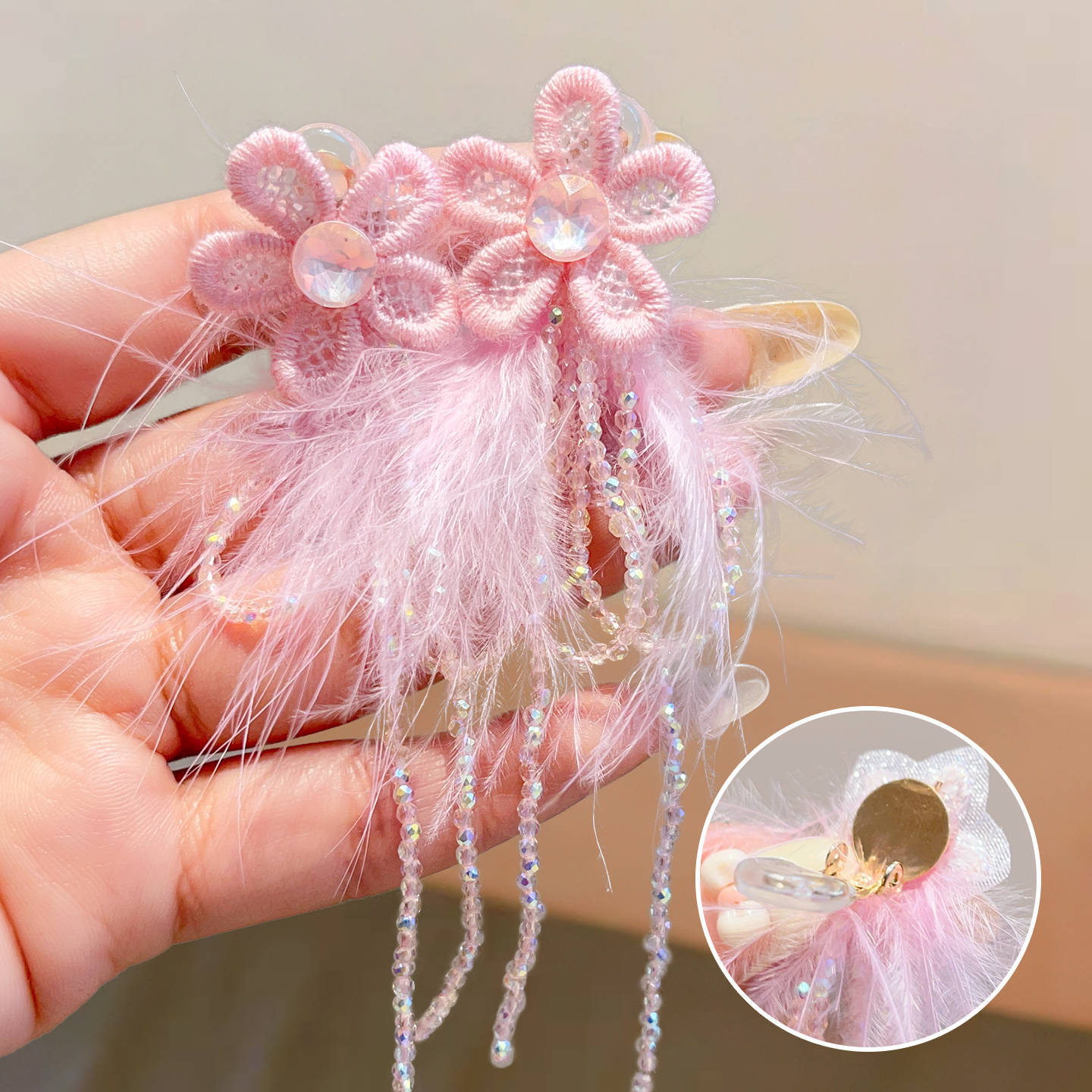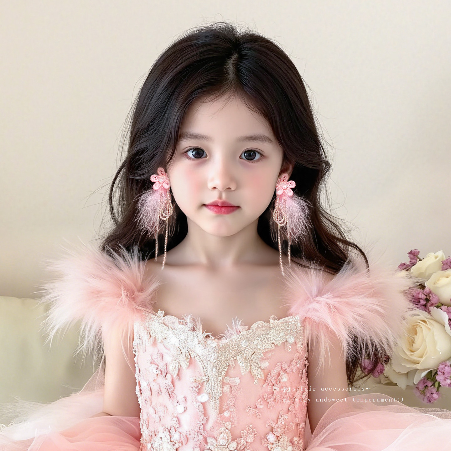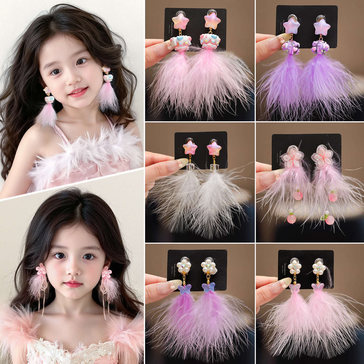 儿童羽毛耳夹仙气流苏花朵蝴蝶小女孩公主耳饰女童无痛耳环耳钉