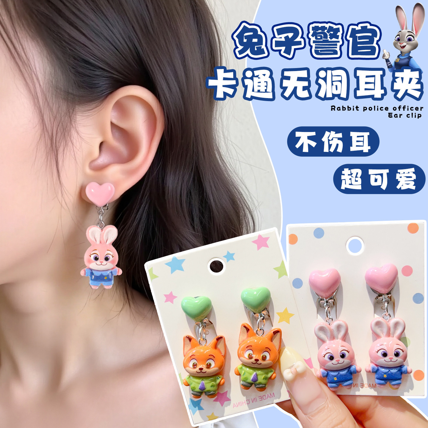 儿童耳夹甜美可爱女孩小兔子配饰首饰女童无耳洞耳环防痛耳坠耳钉