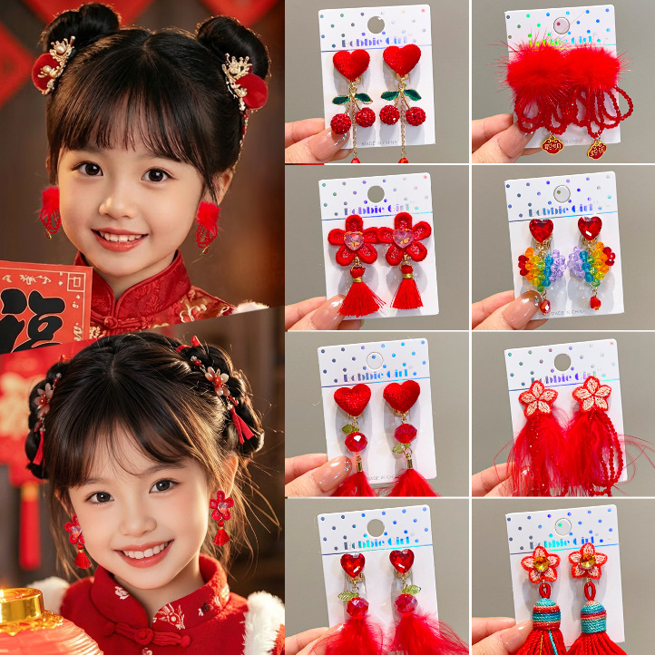 儿童新年耳夹发饰女童古风过年粉色发饰中国风汉服夹子宝宝耳夹女