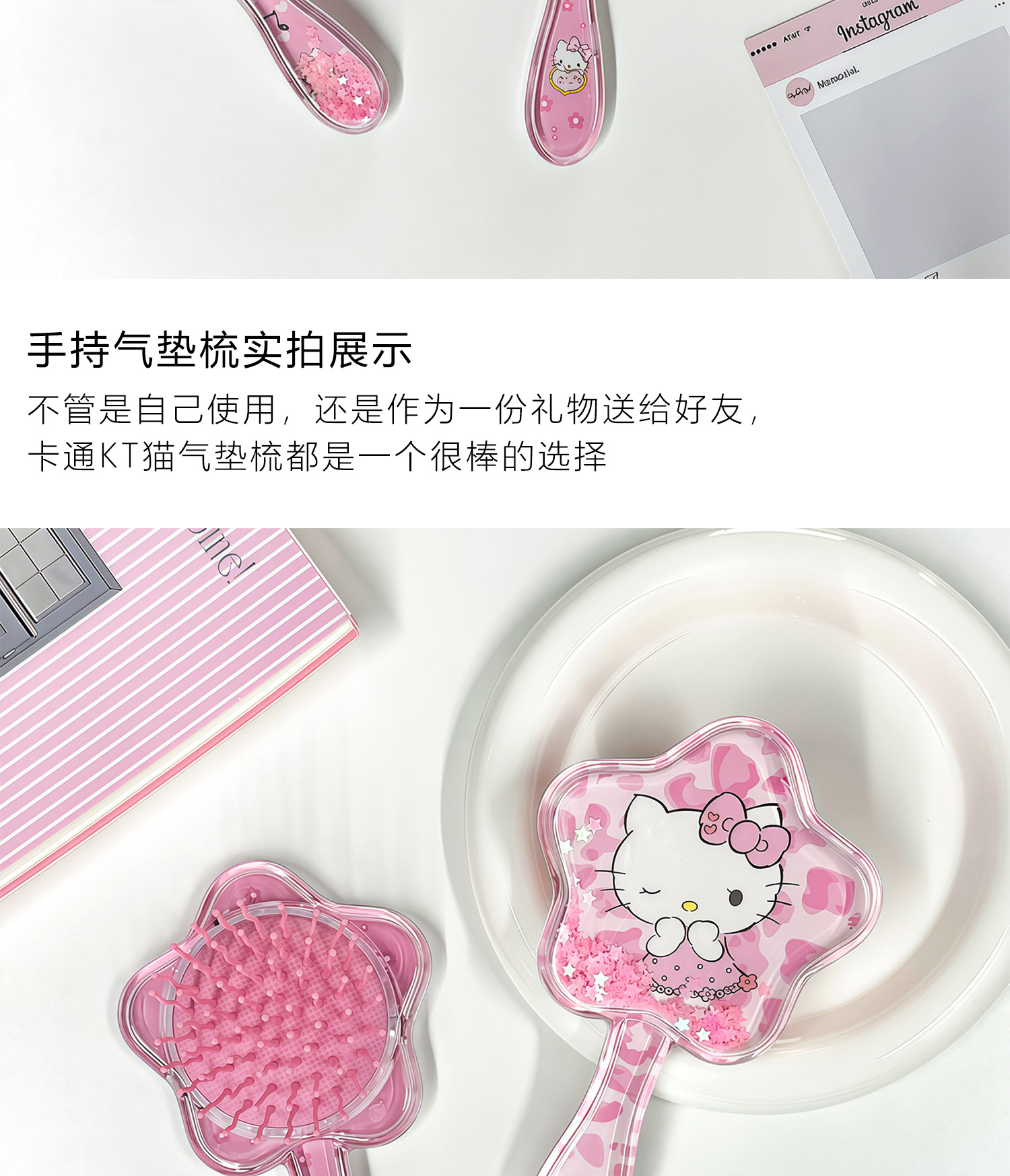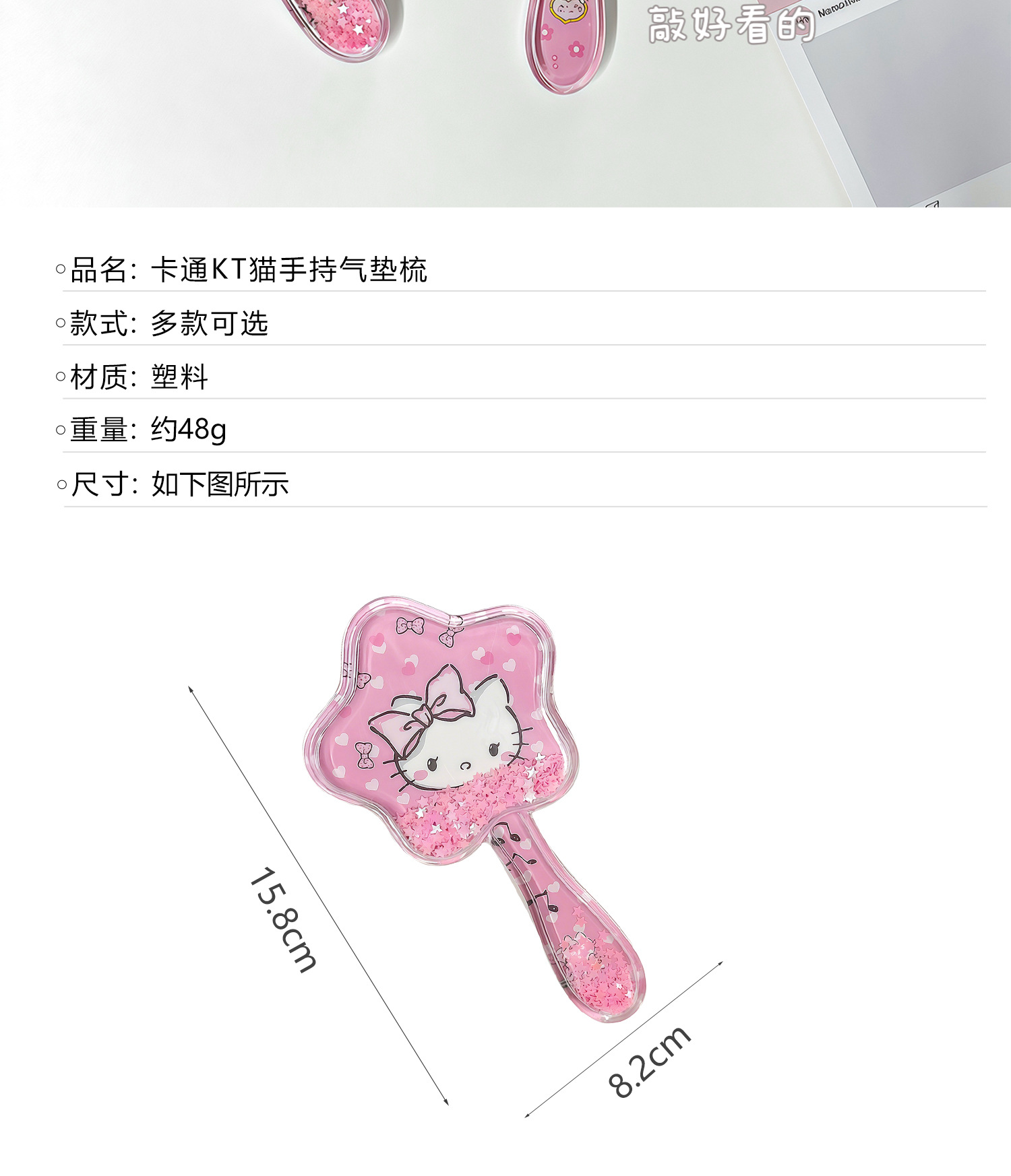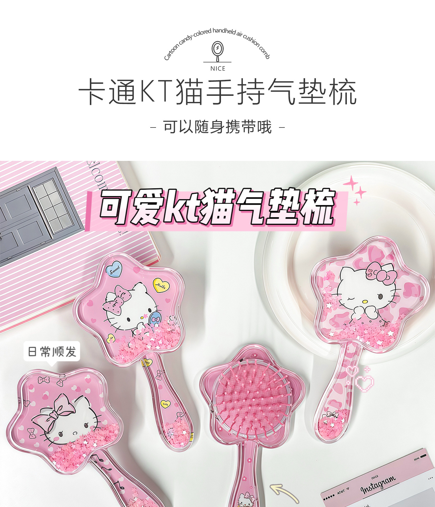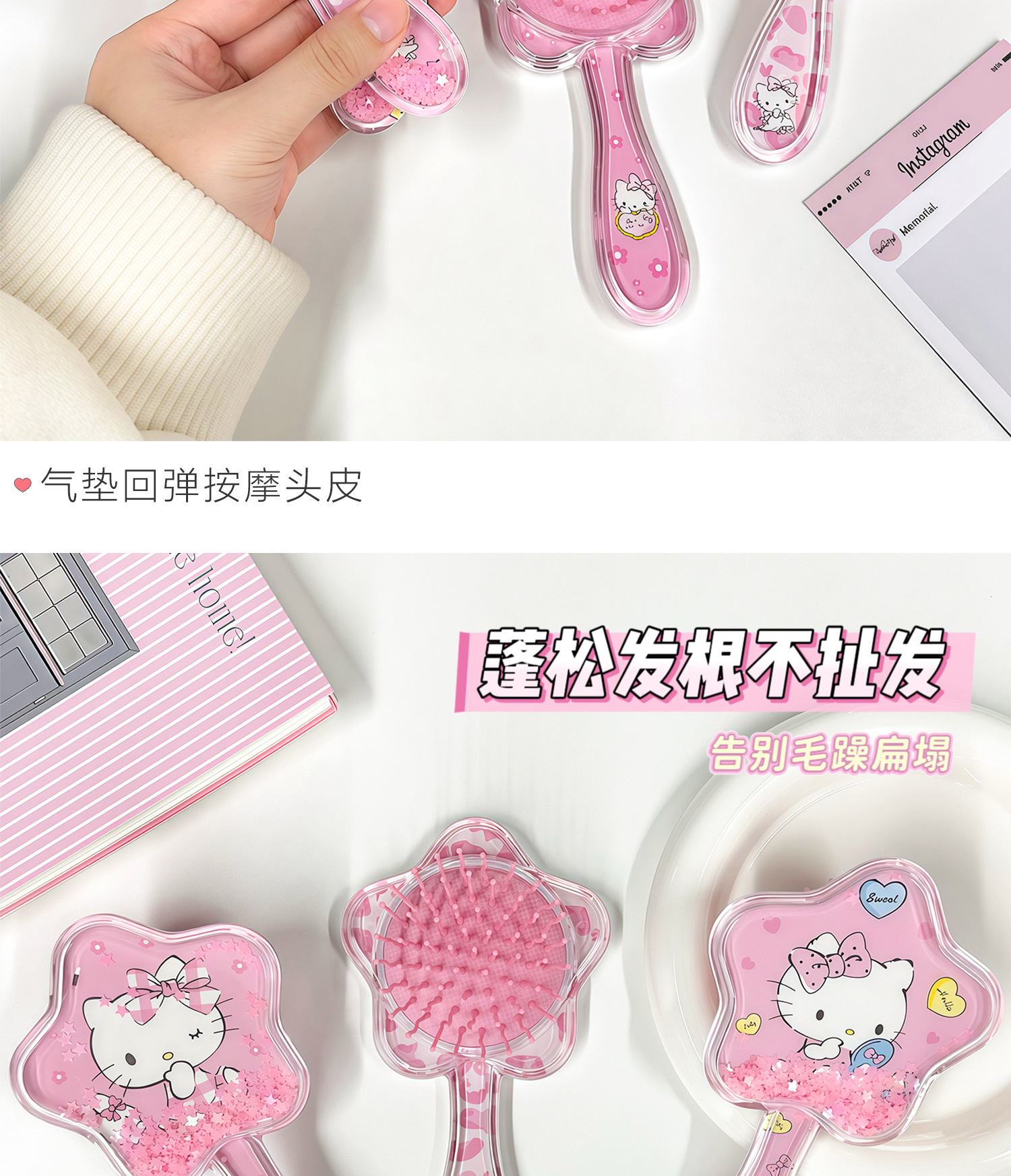 透明五角星kt流沙梳可爱卡通猫咪气囊气垫梳女儿童迷你便携美发梳