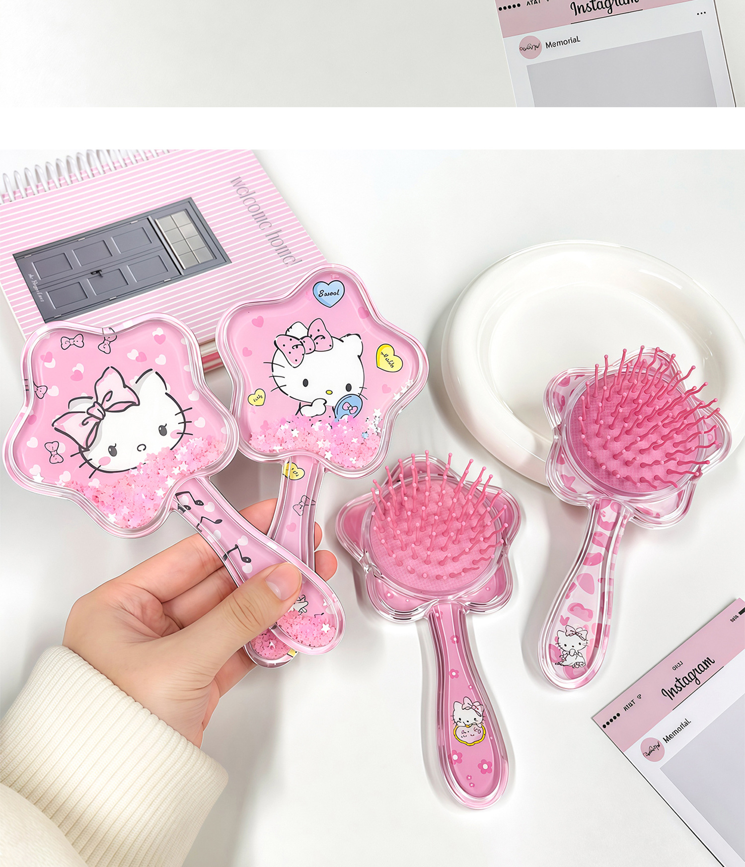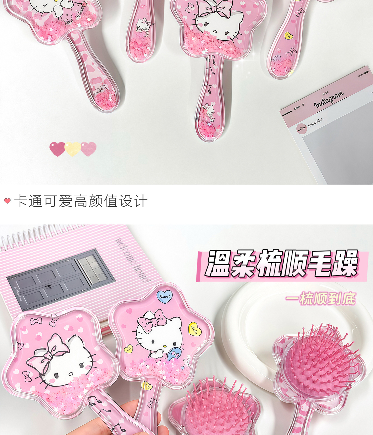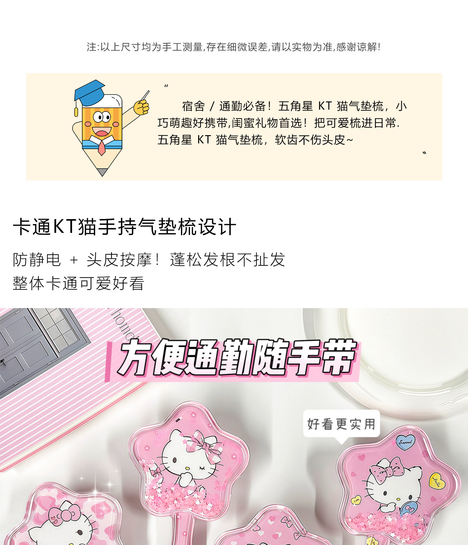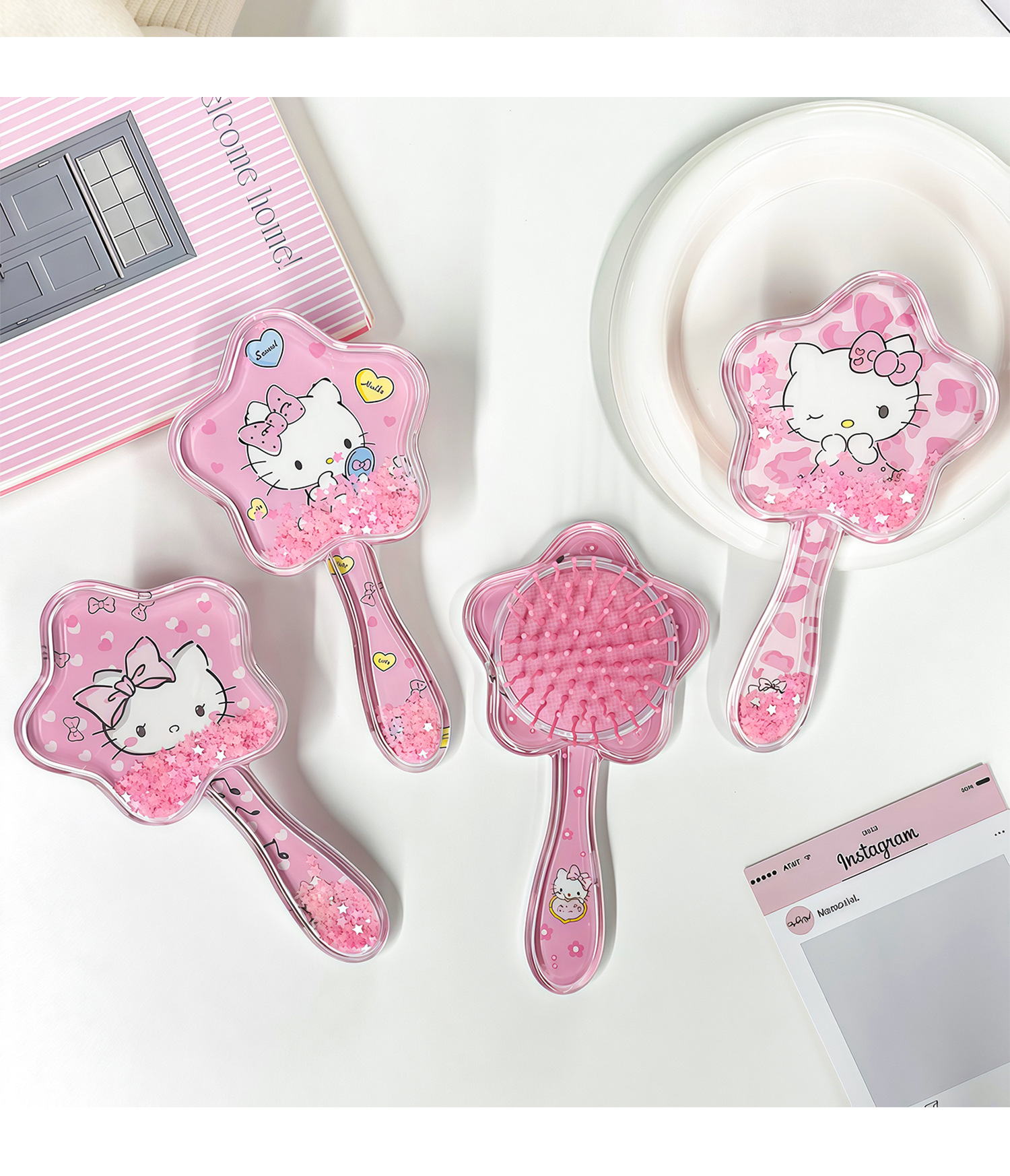 透明五角星kt流沙梳可爱卡通猫咪气囊气垫梳女儿童迷你便携美发梳
