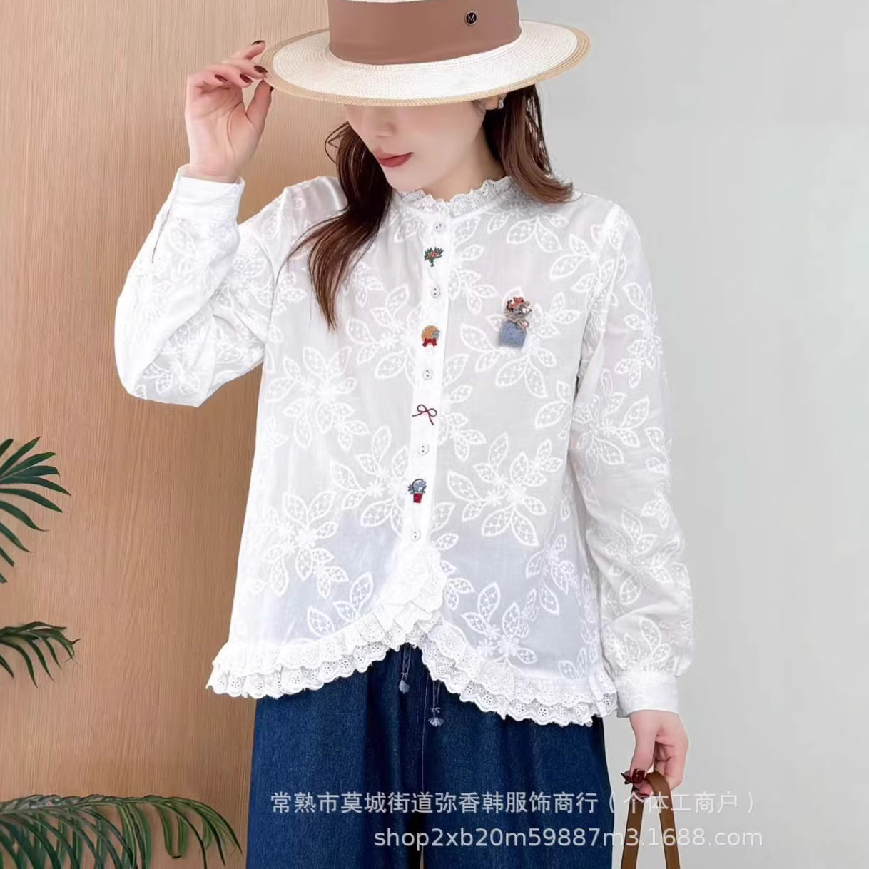 日系女装甘美立体刺繍長袖シャツ女森系ゆるい子供シャツレース文芸上着春