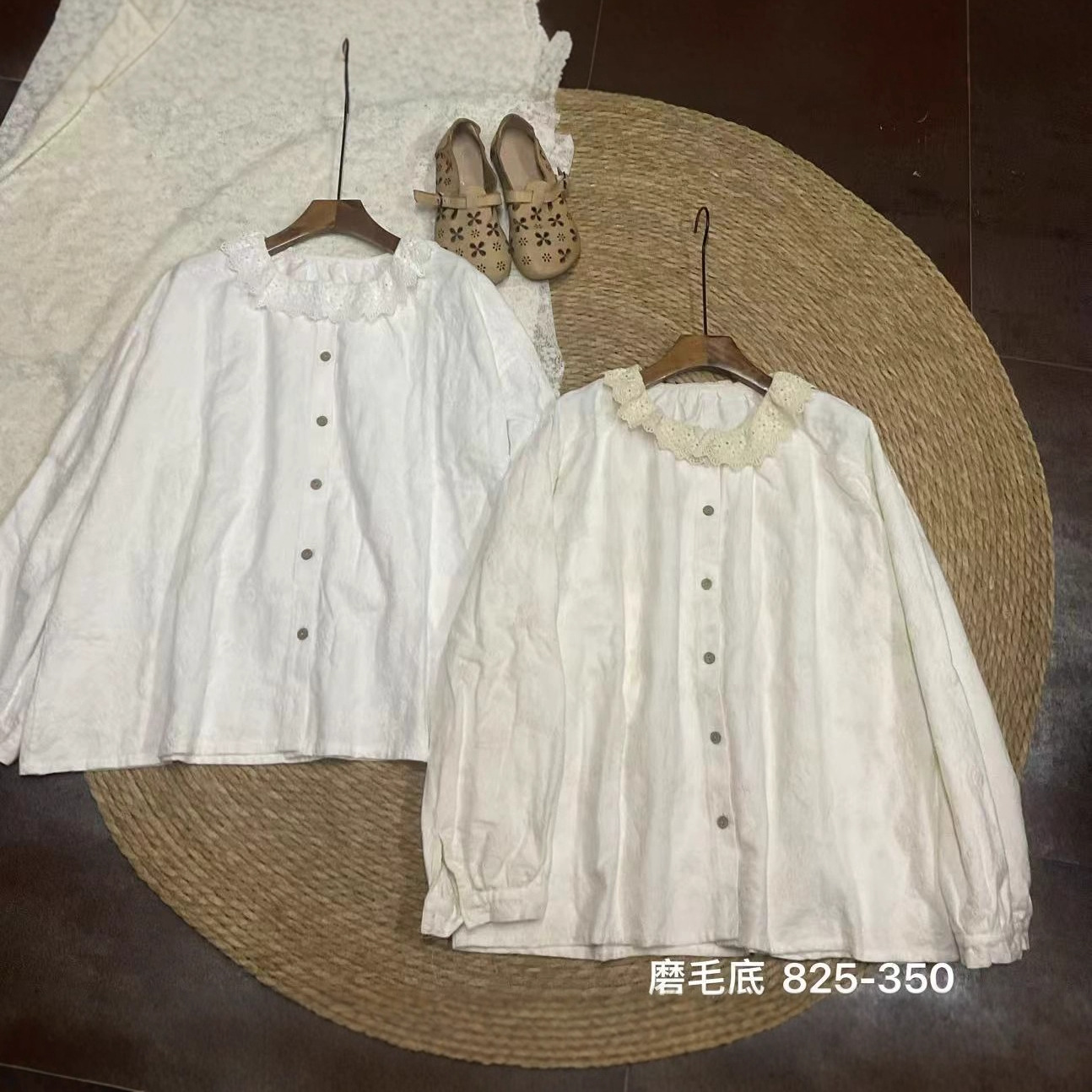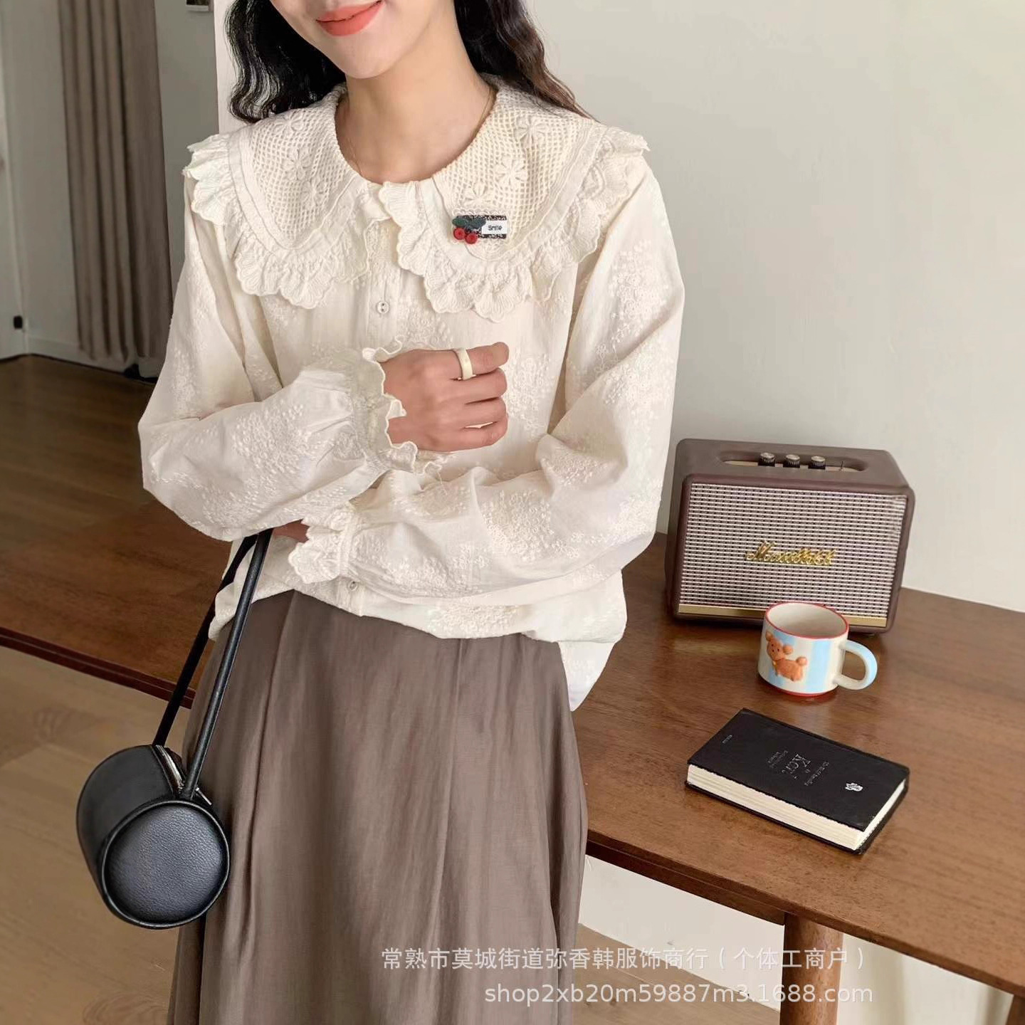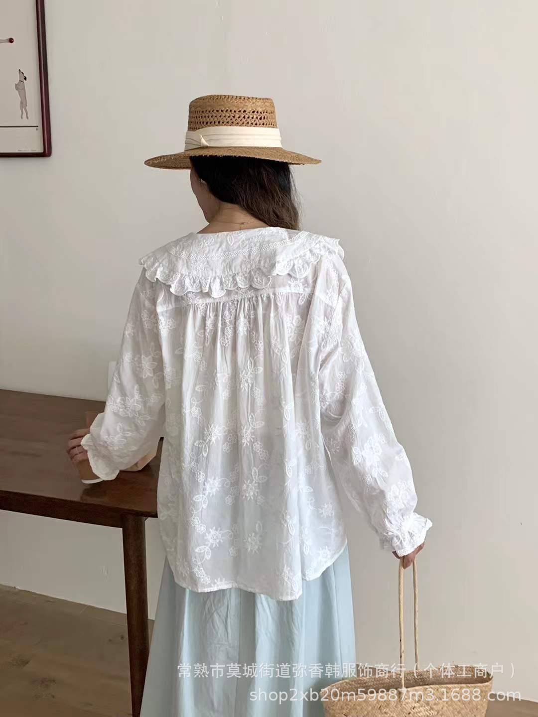 825350娃娃领衬衫女秋冬季新款日系文艺刺绣提花上衣