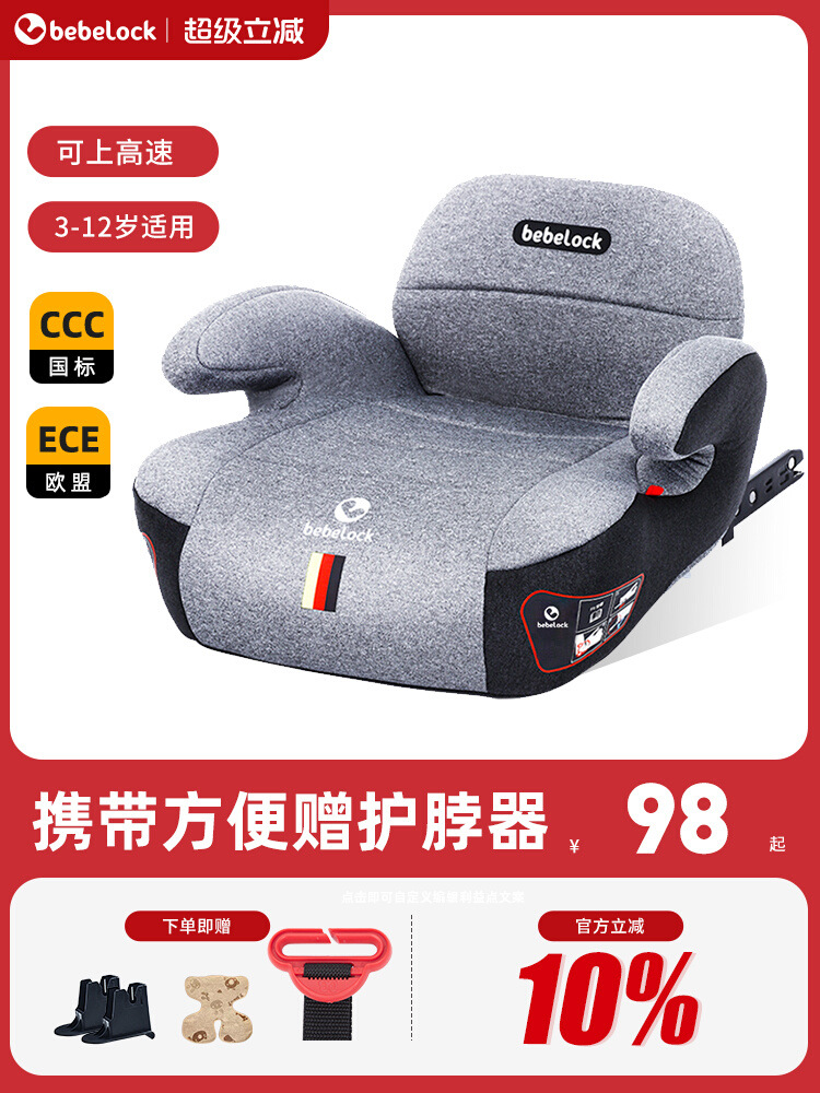 bebelock儿童安全座椅增高垫3-12岁isofix便携简易汽车宝宝坐垫棉