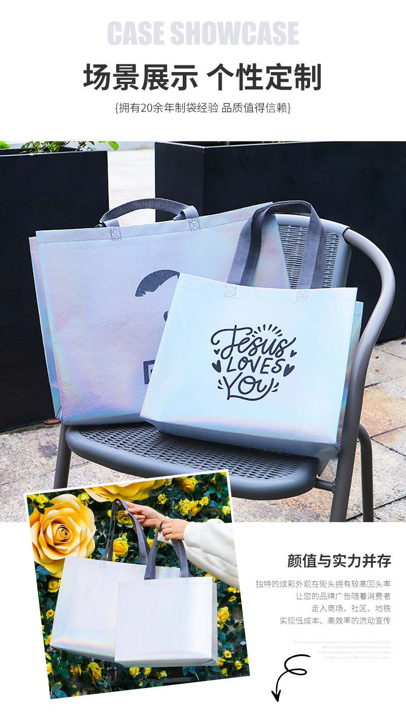 镀铝覆膜服装店手提袋无纺布镭射袋折叠包装广告礼品宣传购物袋