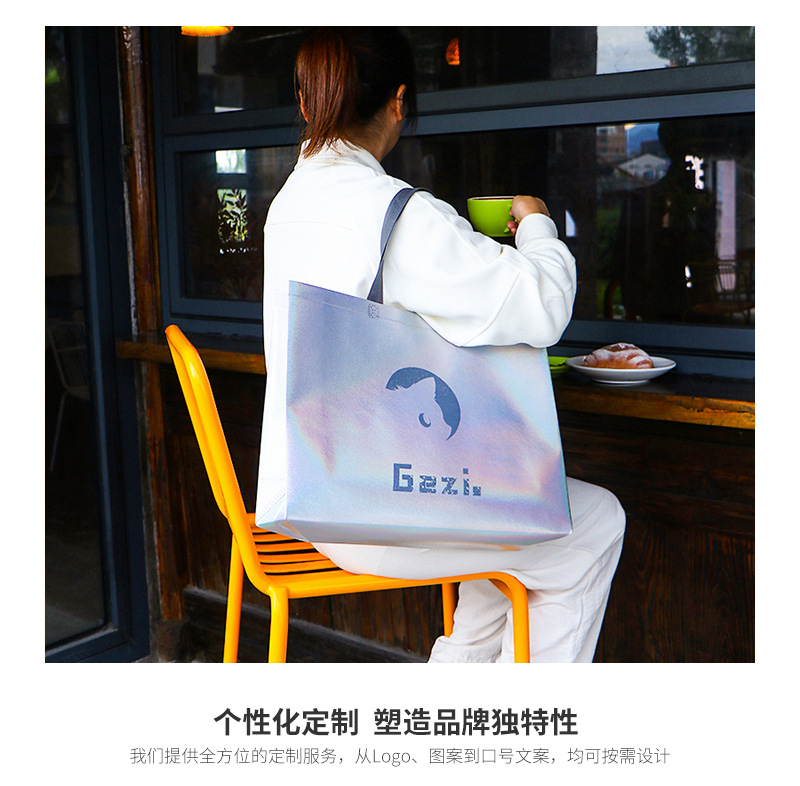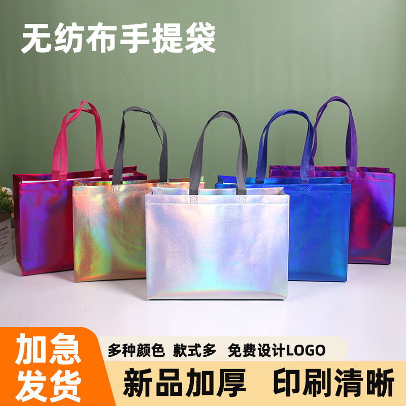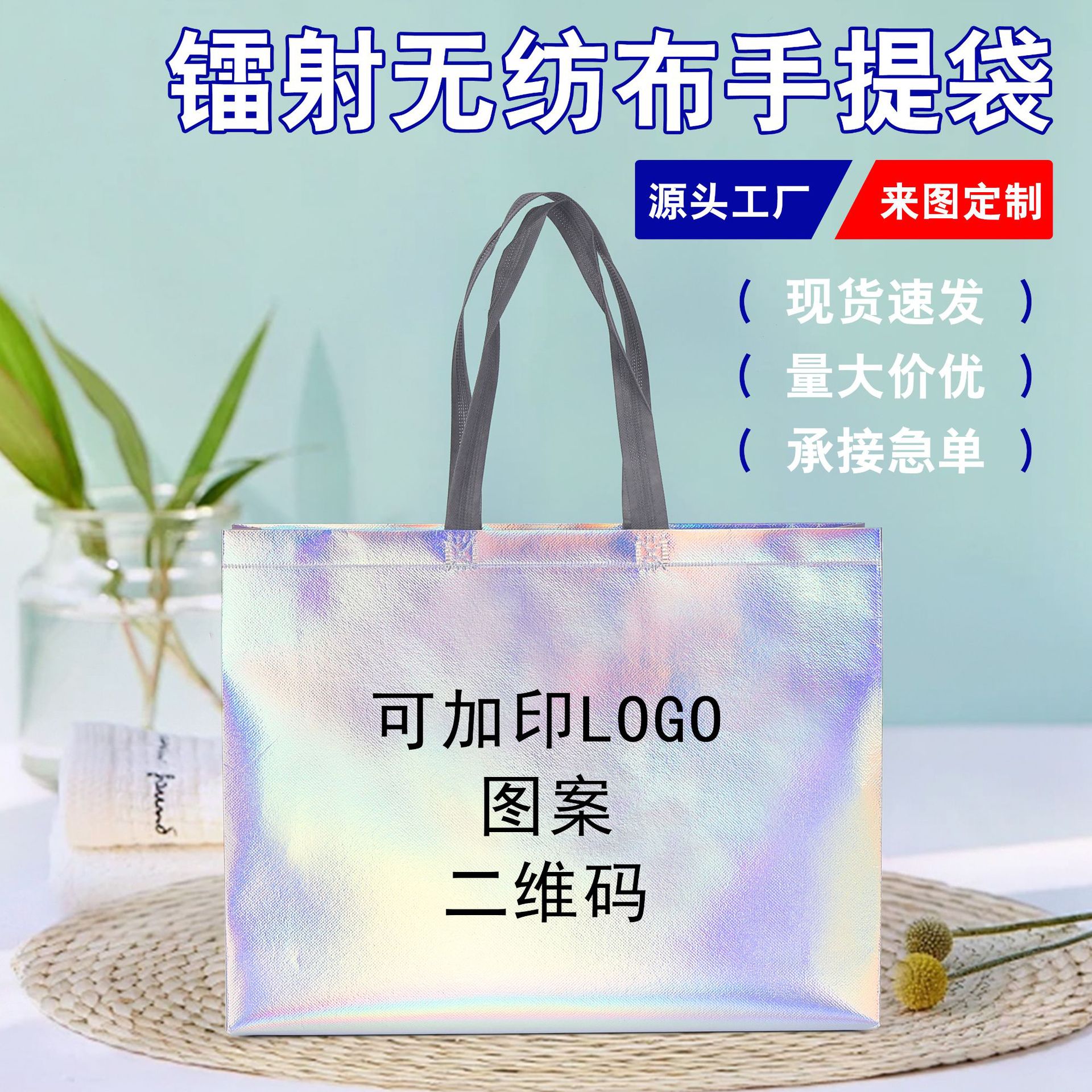 覆膜无纺布袋定制高级感公司宣传礼品袋跨境镭射环保服装店手提袋