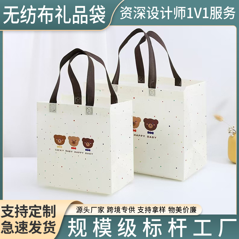 漫画かわいい子熊子供服店不織布環境保護ショッピング手提げ袋服包装ギフトバッグ