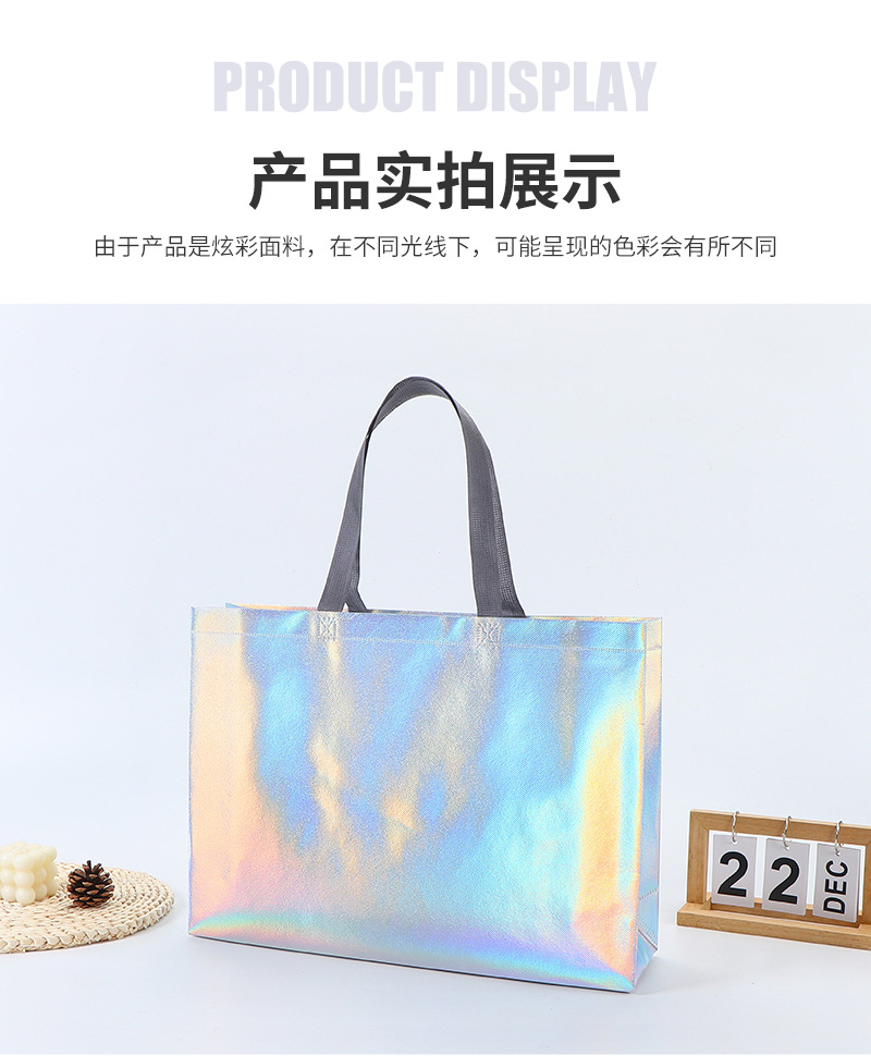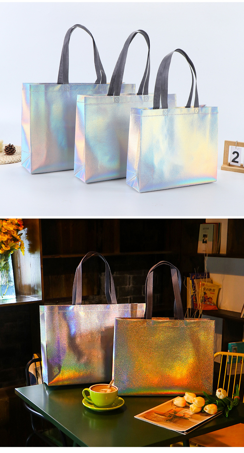 レーザー付きクロスボーダーカラフルなホリデーギフトバッグ カラフルなオーロラアルミフィルムレーザーフィルム不織布バッグカスタマイズ
