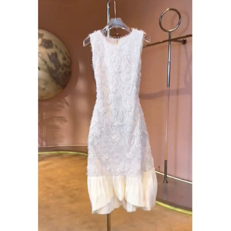 フランスの気質の長いスカート2025年の早春の新型の気質の軽い豪華なスパンコールの優雅な百合のファッションの袖なしのワンピース