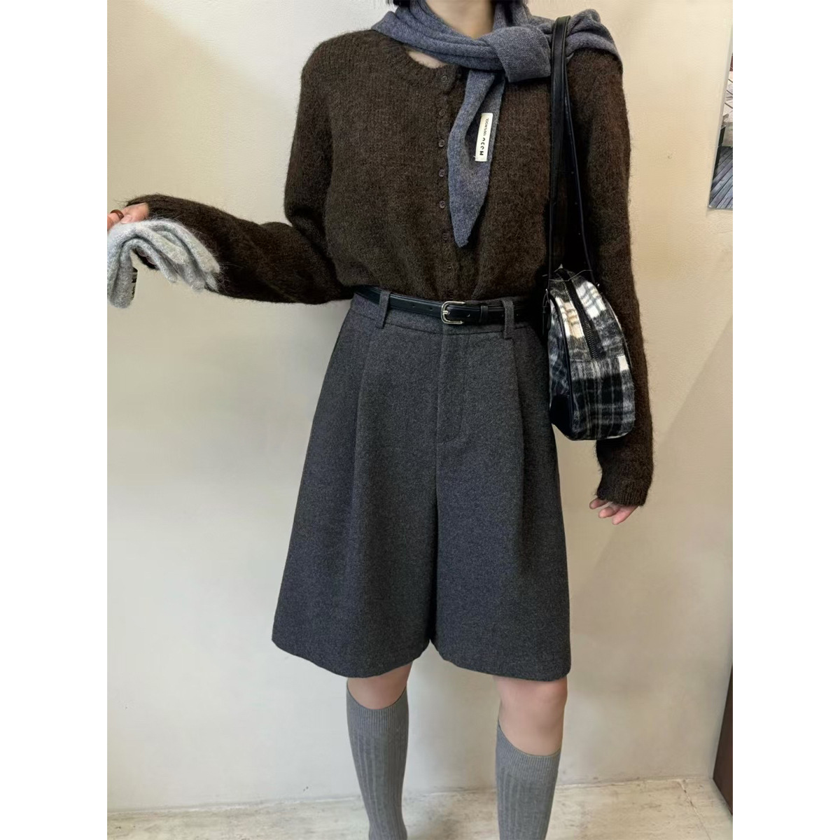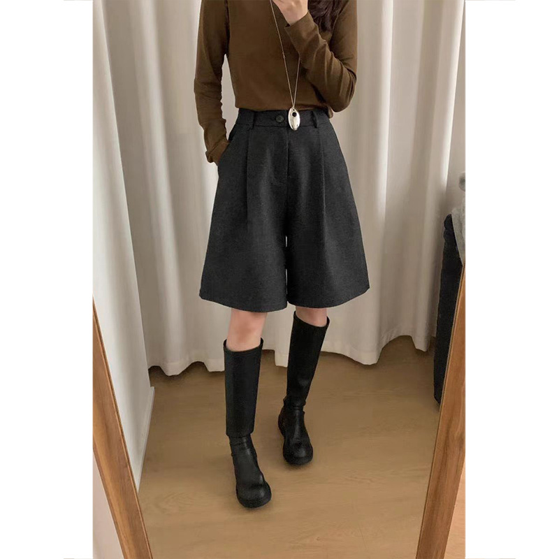 毛呢阔腿短裤女士2025秋冬韩系高腰中裤小个子显瘦直筒a字五分裤