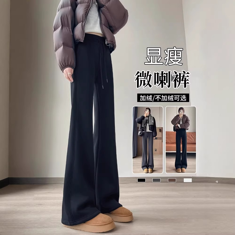アメリカ風のマイクロフレアパンツ レディース 2025秋冬 裏起毛 ハイウエスト 着痩せ効果 小柄さん向け カジュアル スウェットパンツ スポーツ フロアレングス ベルボトムパンツ