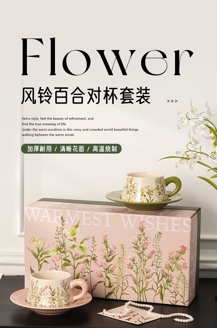 北欧风高颜值田园百合陶瓷咖啡杯碟套装下午茶精致茶具礼盒装礼物