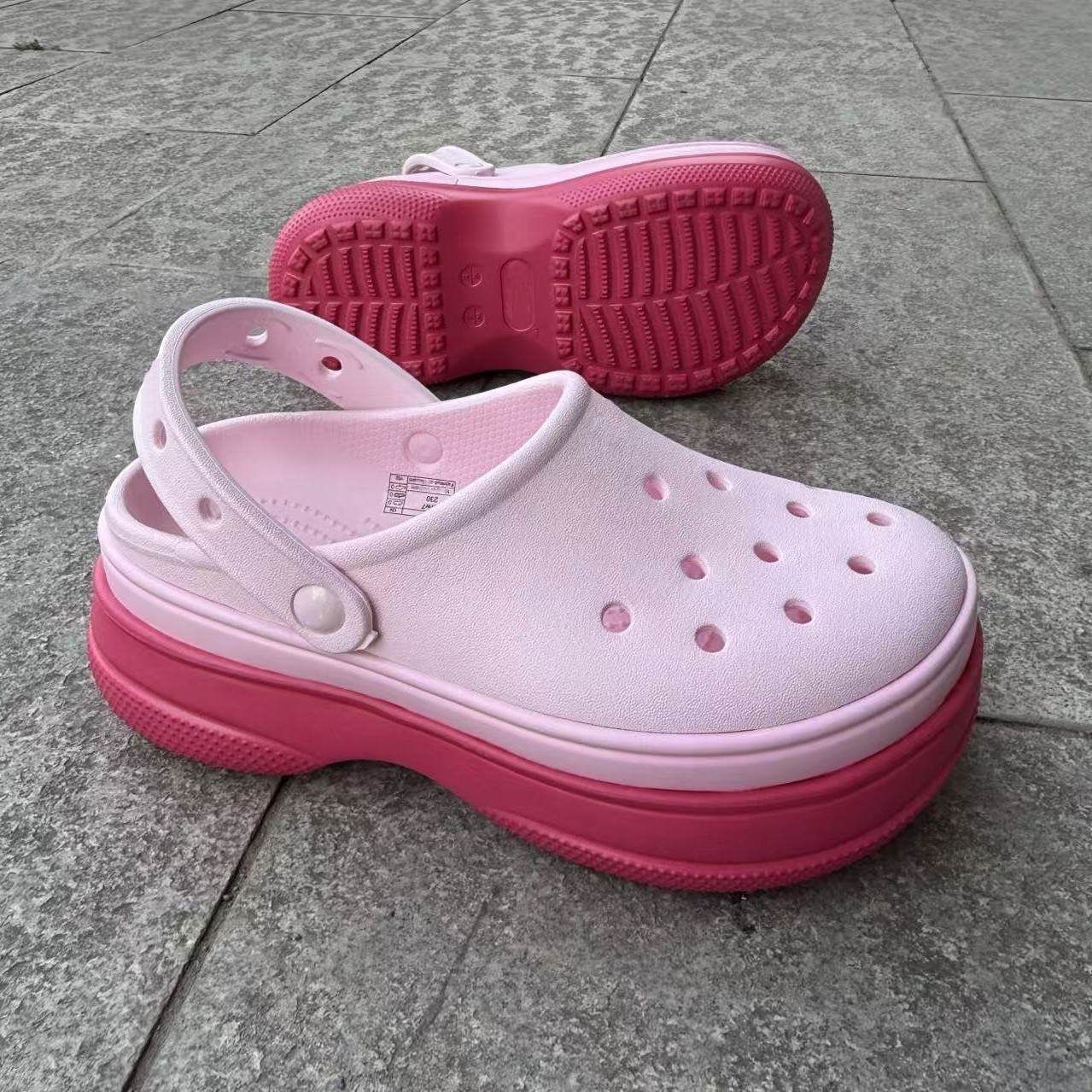 经典堆堆洞洞鞋外穿包头拖鞋拼接撞色百搭厚底增高松糕凉拖鞋时尚