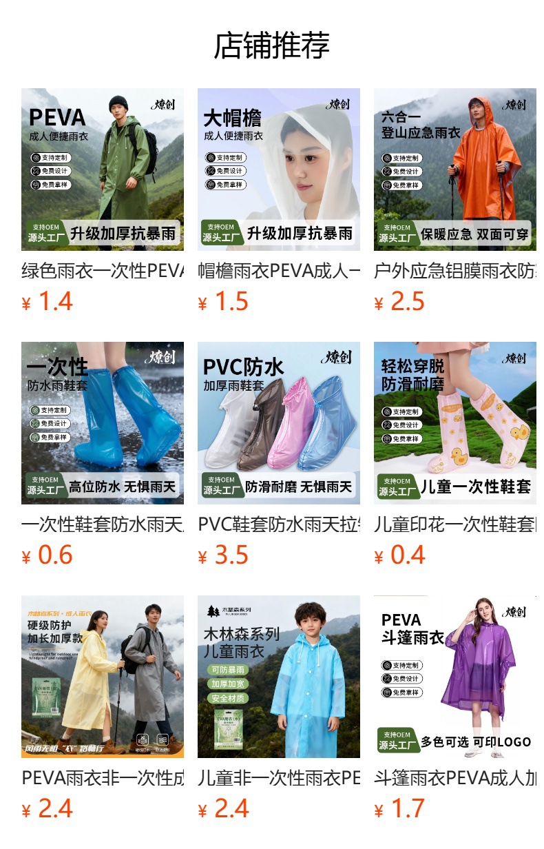 产品类别 雨披