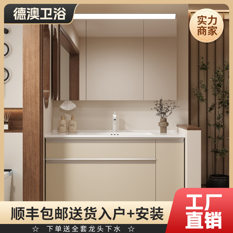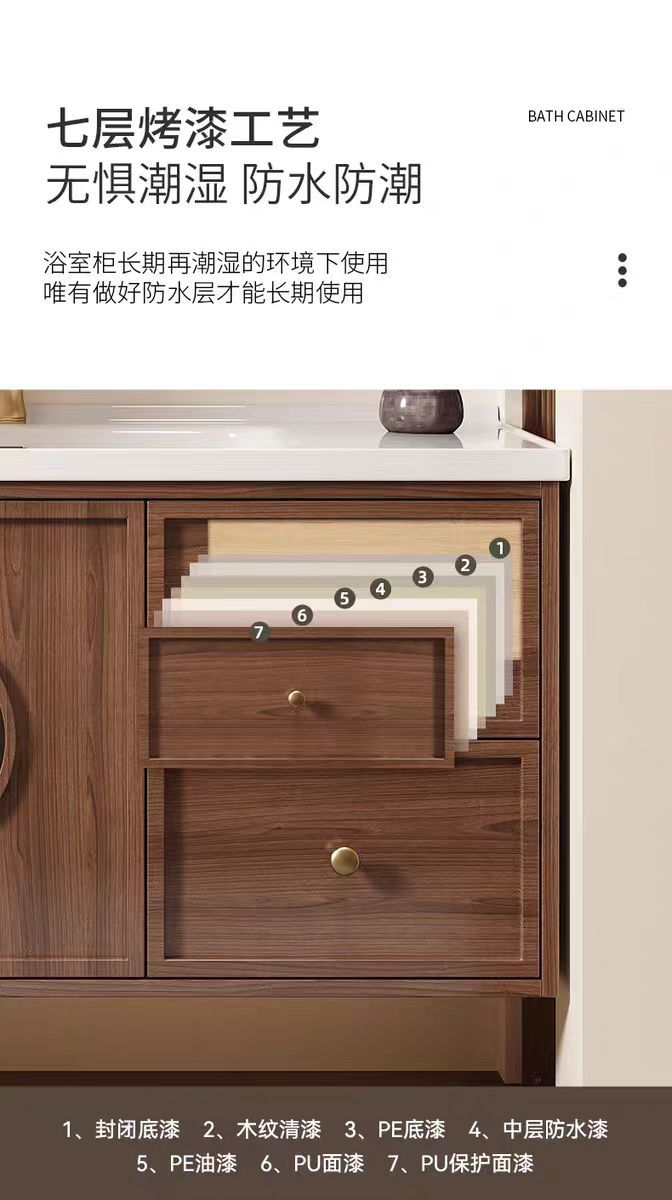 紅書網紅中古風胡桃色浴室キャビネットセット洗面台岩板陶磁器一体型洗面台洗面台