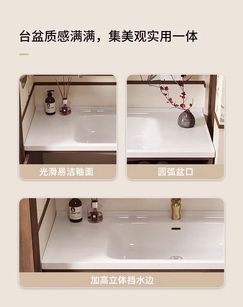 新款宋氏美学风浴室柜组合卫生间陶瓷一体洗手盆洗漱台洗脸盆柜