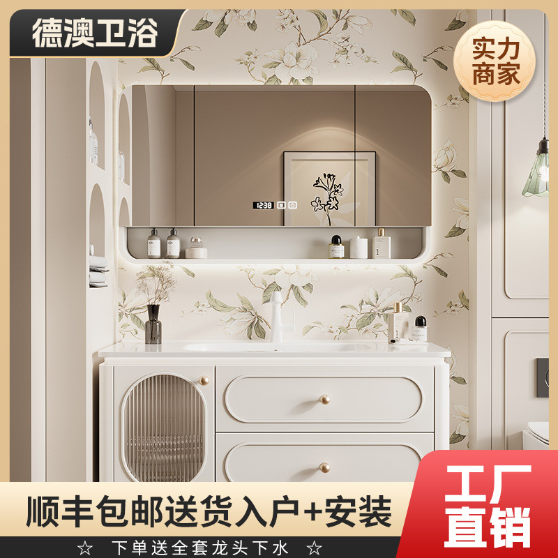 高端法式奶油风橡木烤漆陶瓷一体盆智能组合卫生间洗脸洗手浴室