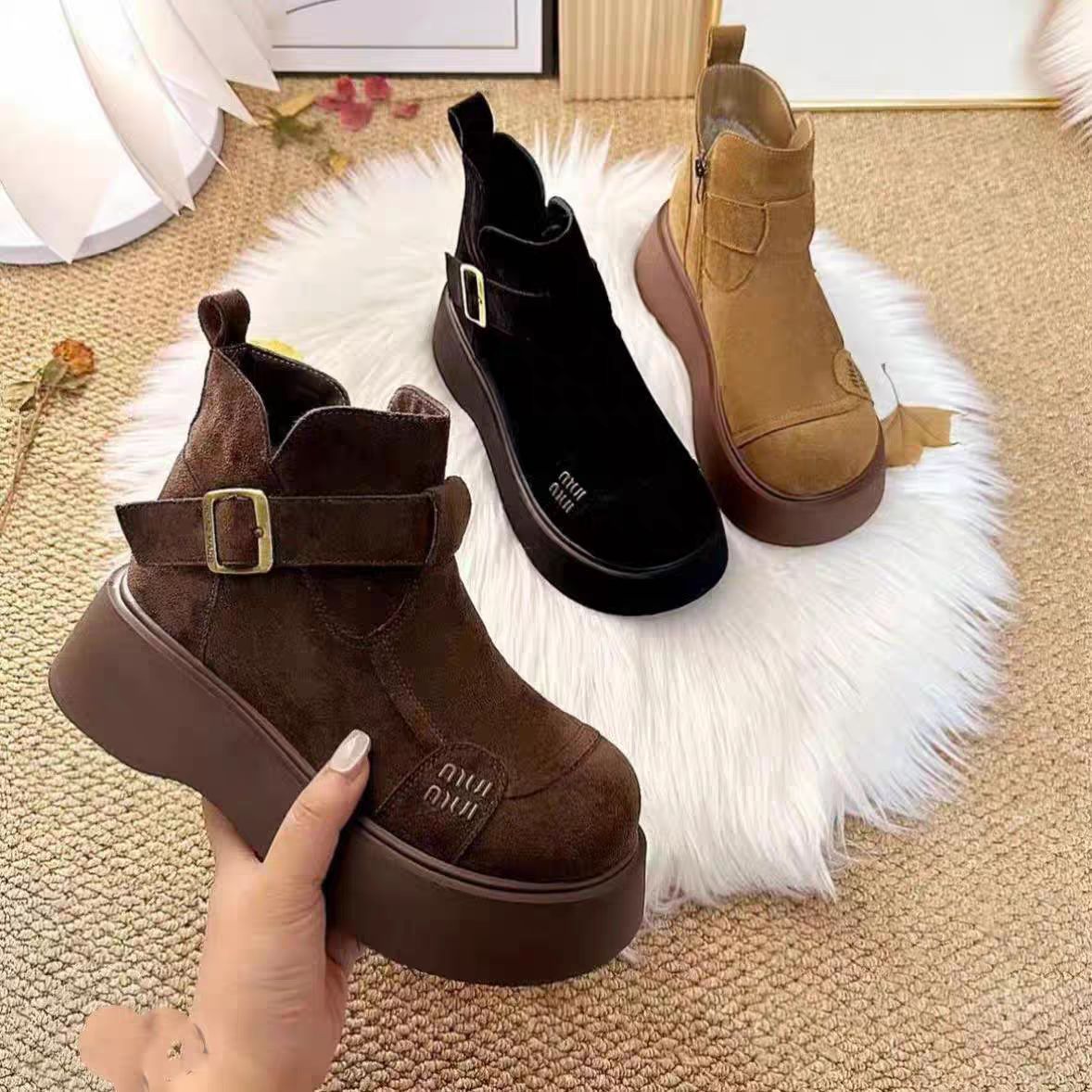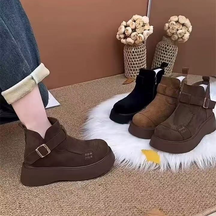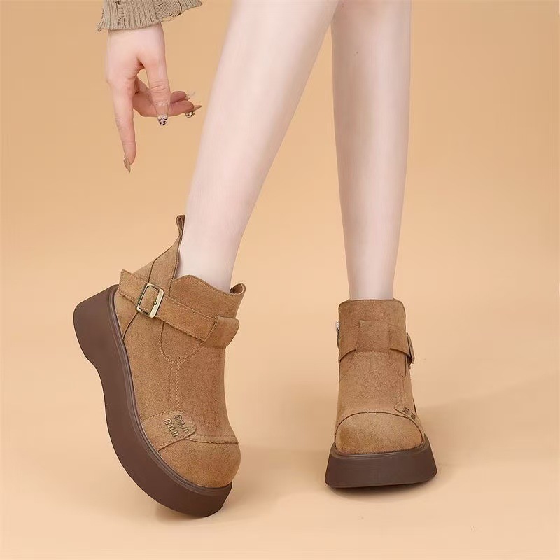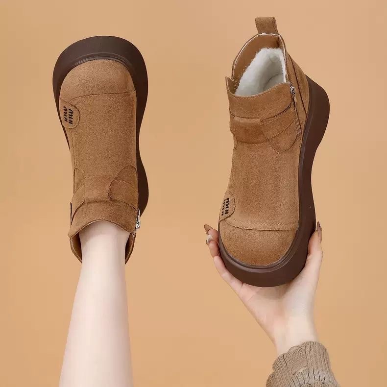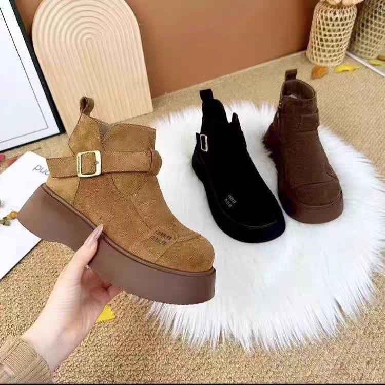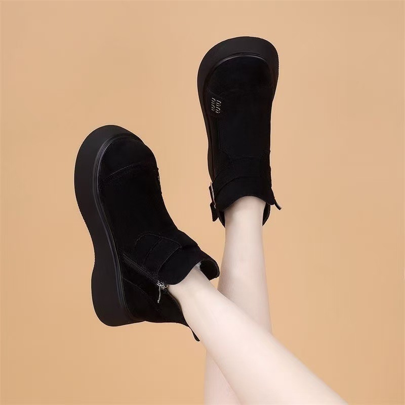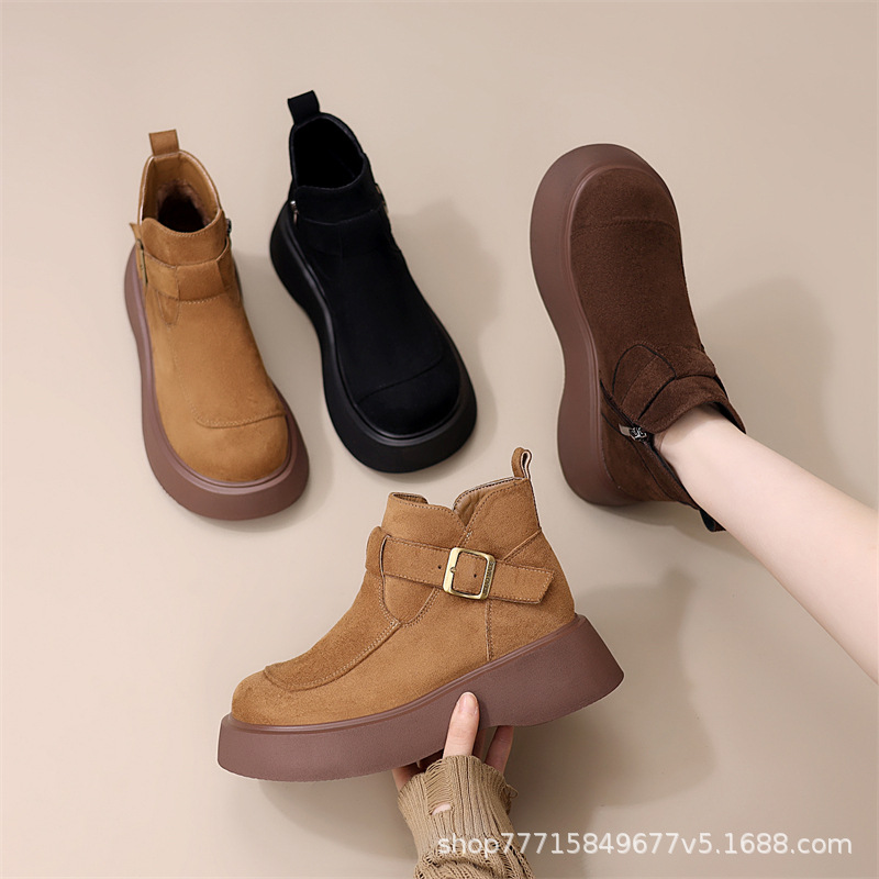 绒面厚底马丁靴女2025冬季新款加绒保暖勃肯鞋增高显瘦超轻短靴子