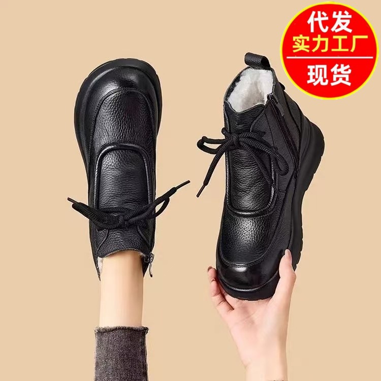 2025秋冬新作 レトロ風万能スノーブーツ ソフトソール 防水綿靴 裏起毛 厚底 保温 ハイカット レディースシューズ