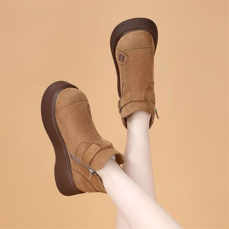 2025冬季新款保暖加绒防滑绒面短靴女百搭气质马丁靴厚底勃肯靴女