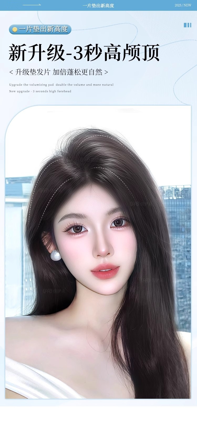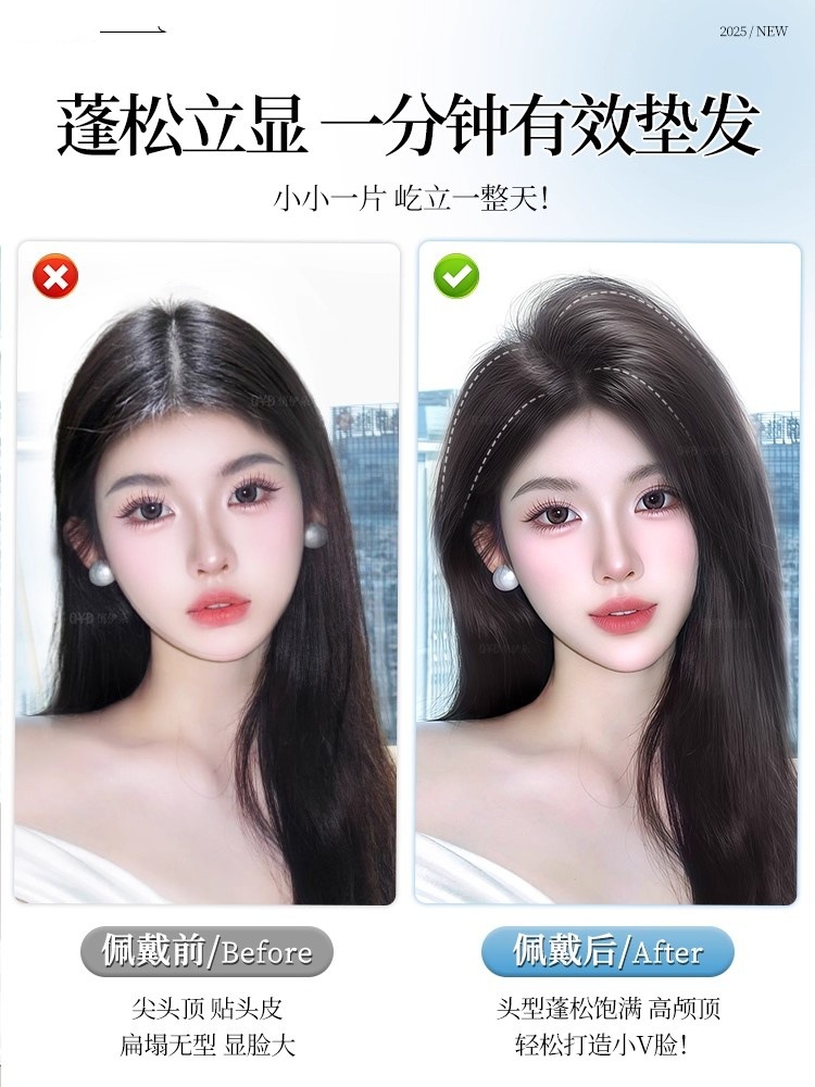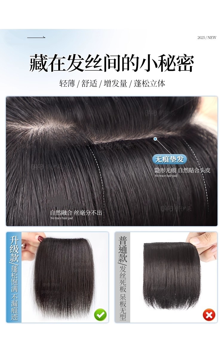 假发片女仿真发头顶增发量蓬松高颅顶手织包边隐形无痕海绵垫发片