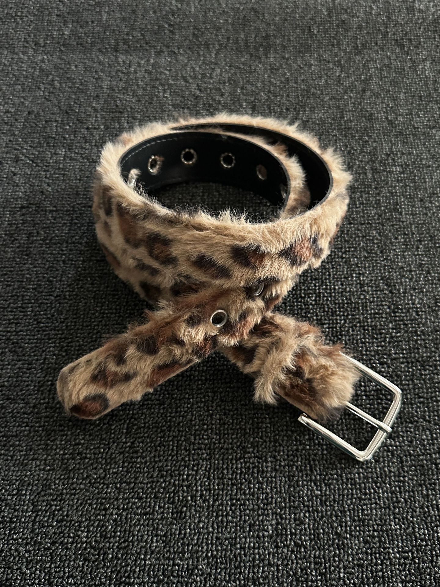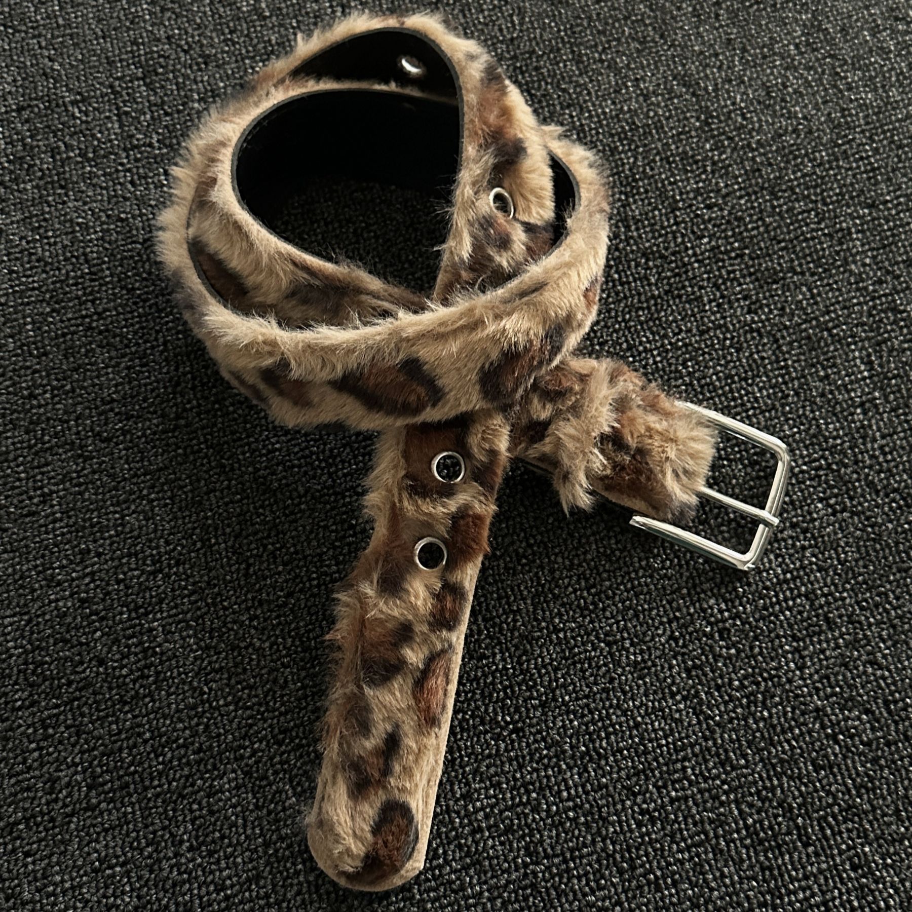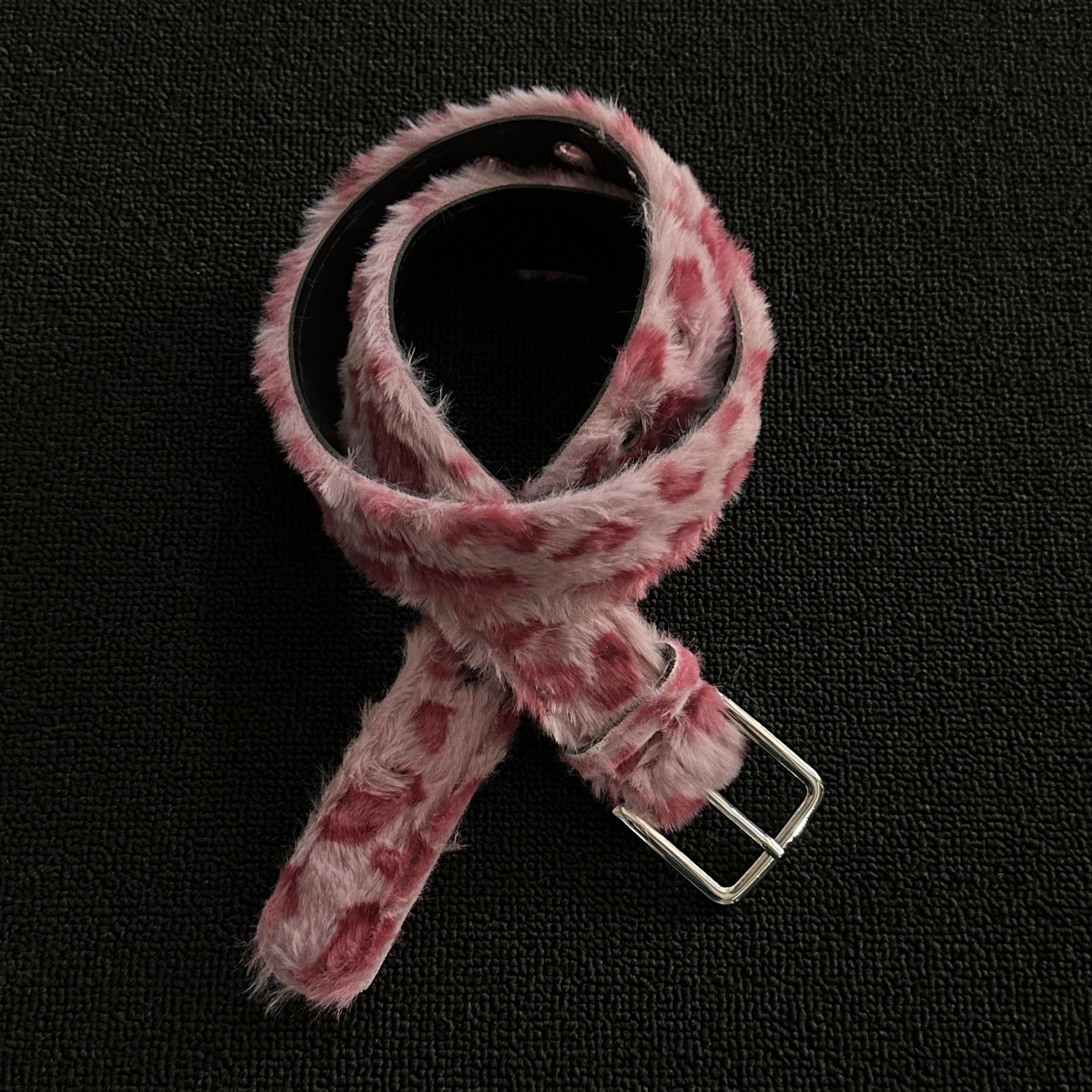 豹纹毛绒千禧风腰带小众y2k设计感朋克风街头裤腰链时尚针扣裤带