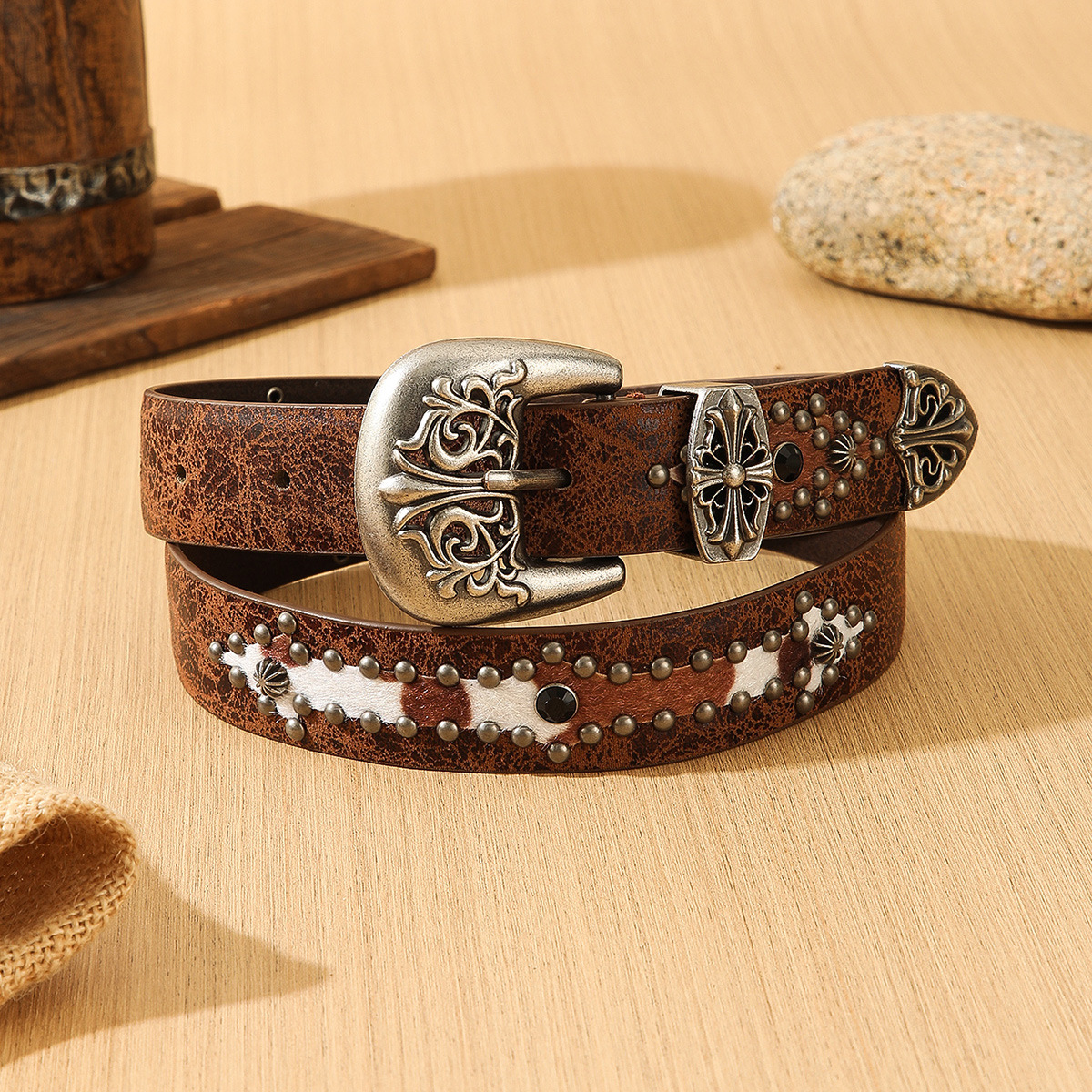 艾恩沃斯花纹铆钉皮带中古纹理质感vibe风腰带复古穿搭裤带配饰品