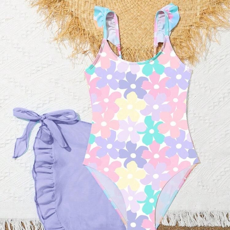 2025 新しいクロスボーダー子供のかわいいスプリット水着小さな新鮮な花柄韓国スタイルベビーかわいい水着水着女性
