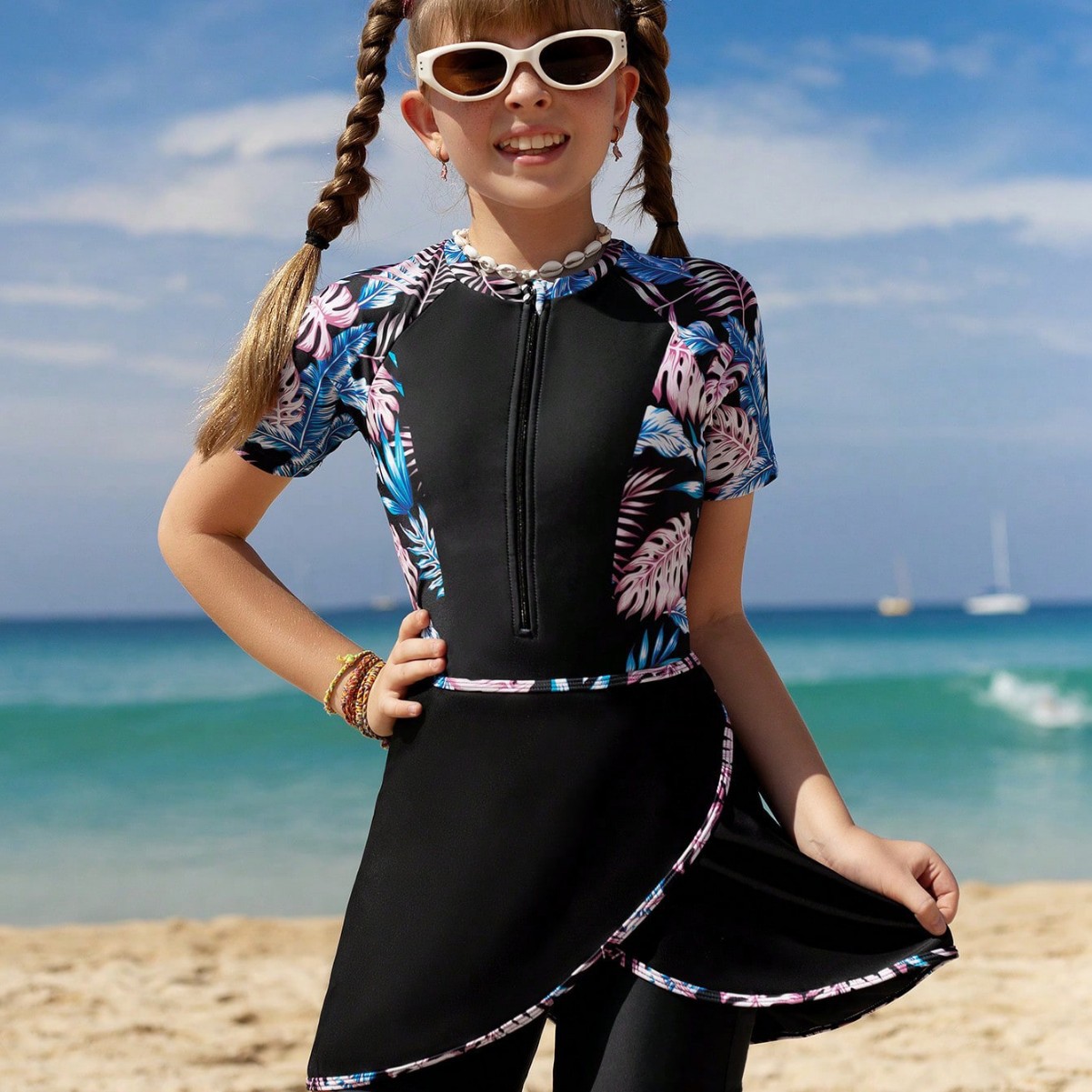 子供の新しいワンピース水着女性の外国貿易アマゾン AliExpress スポーツ半袖日焼け止め水着夏のツーピースセット