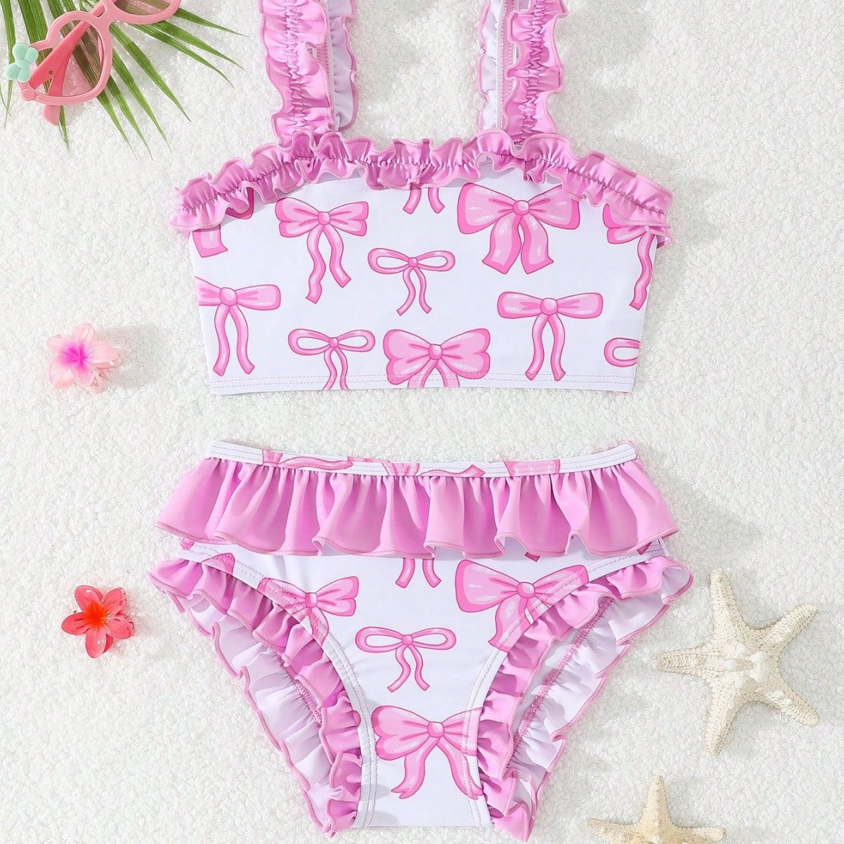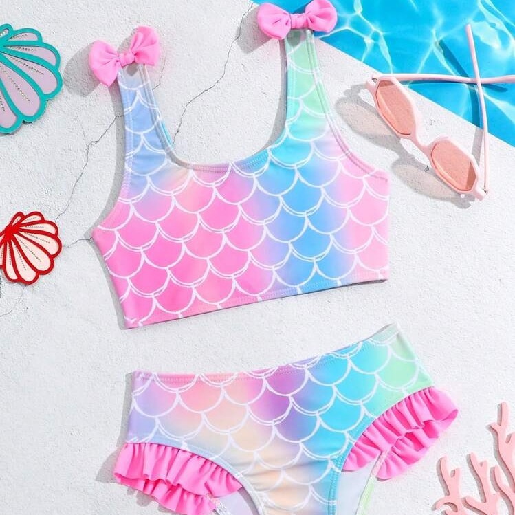 2025 新しい女の子スプリット水着魚鱗プリントフリル子供水着快適な女の子水着クロスボーダー