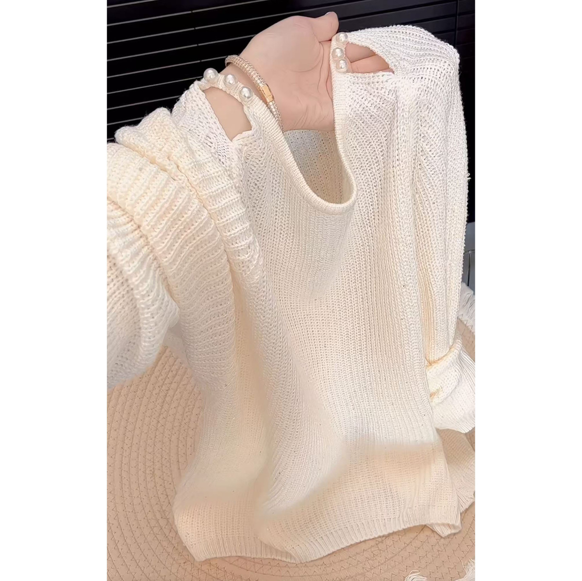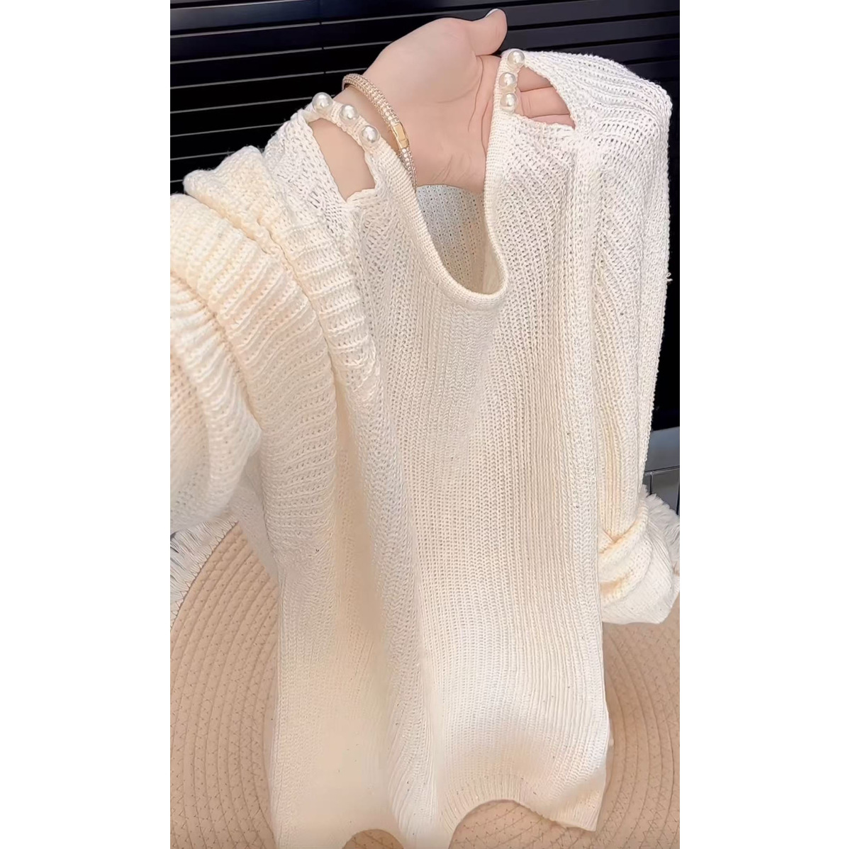 今年流行穿搭2025早秋新款温柔风珍珠亮片镂空毛针织衫长袖上衣