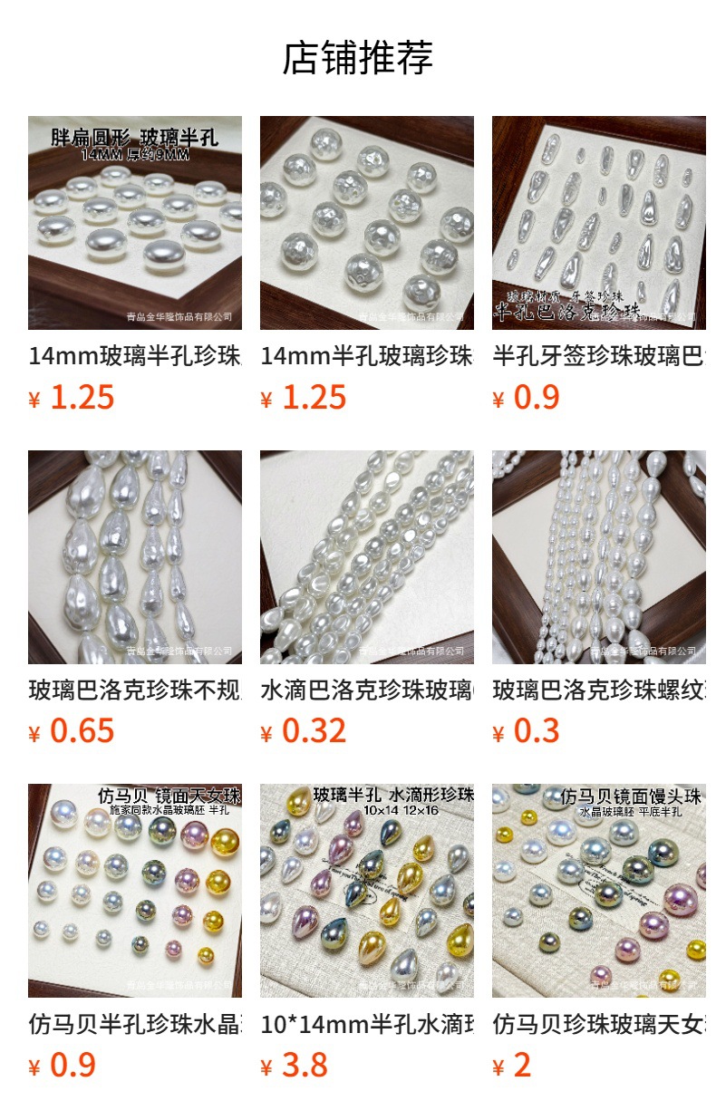 模造シーシェルパール、ガラスパール、直穴模造パール、丸玉ビーズ、衣料品アクセサリー、ジュエリー材料、卸売