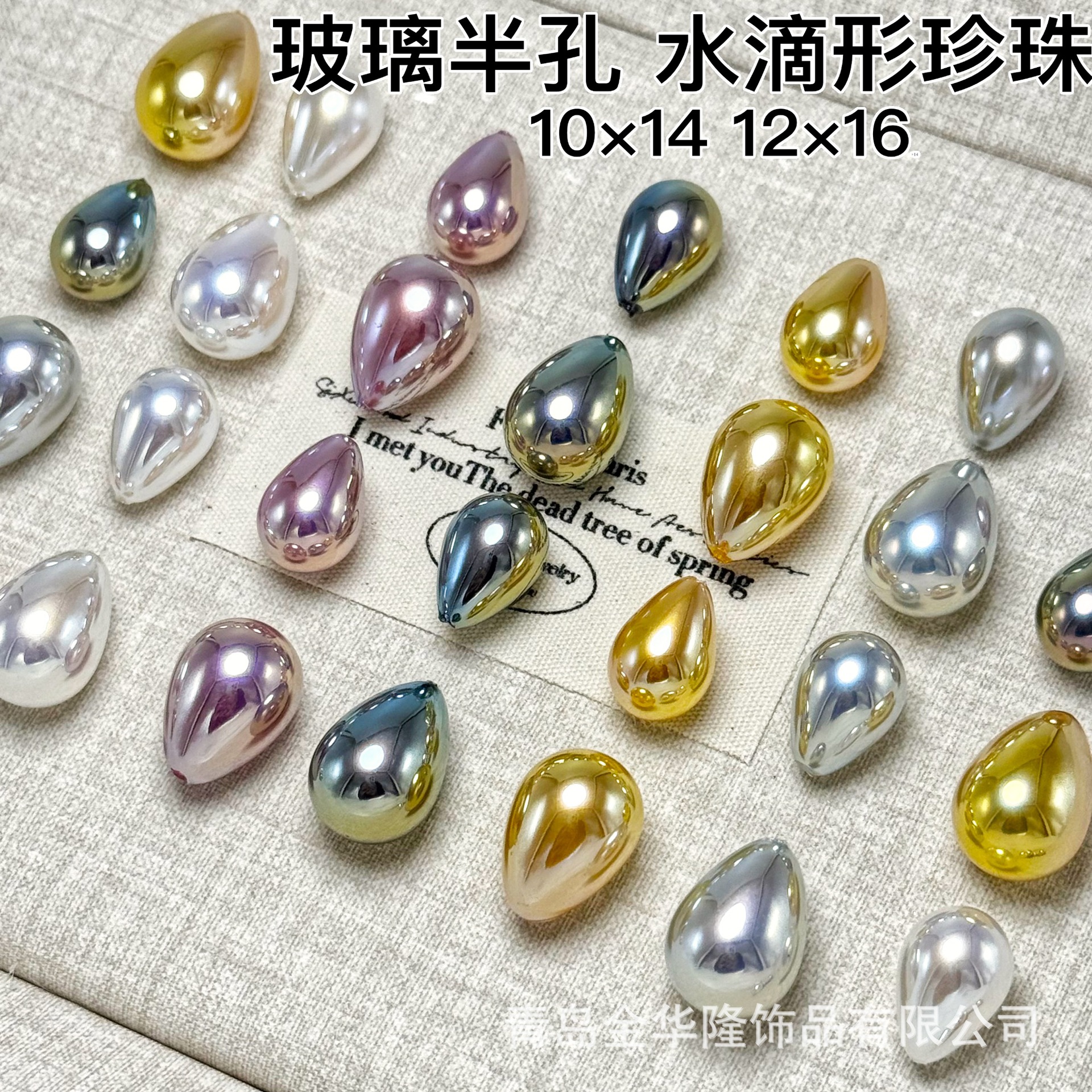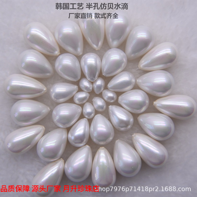10*14mm半孔水滴珍珠玻璃12*16炫彩仿马贝耳饰吊坠饰品配件散珠