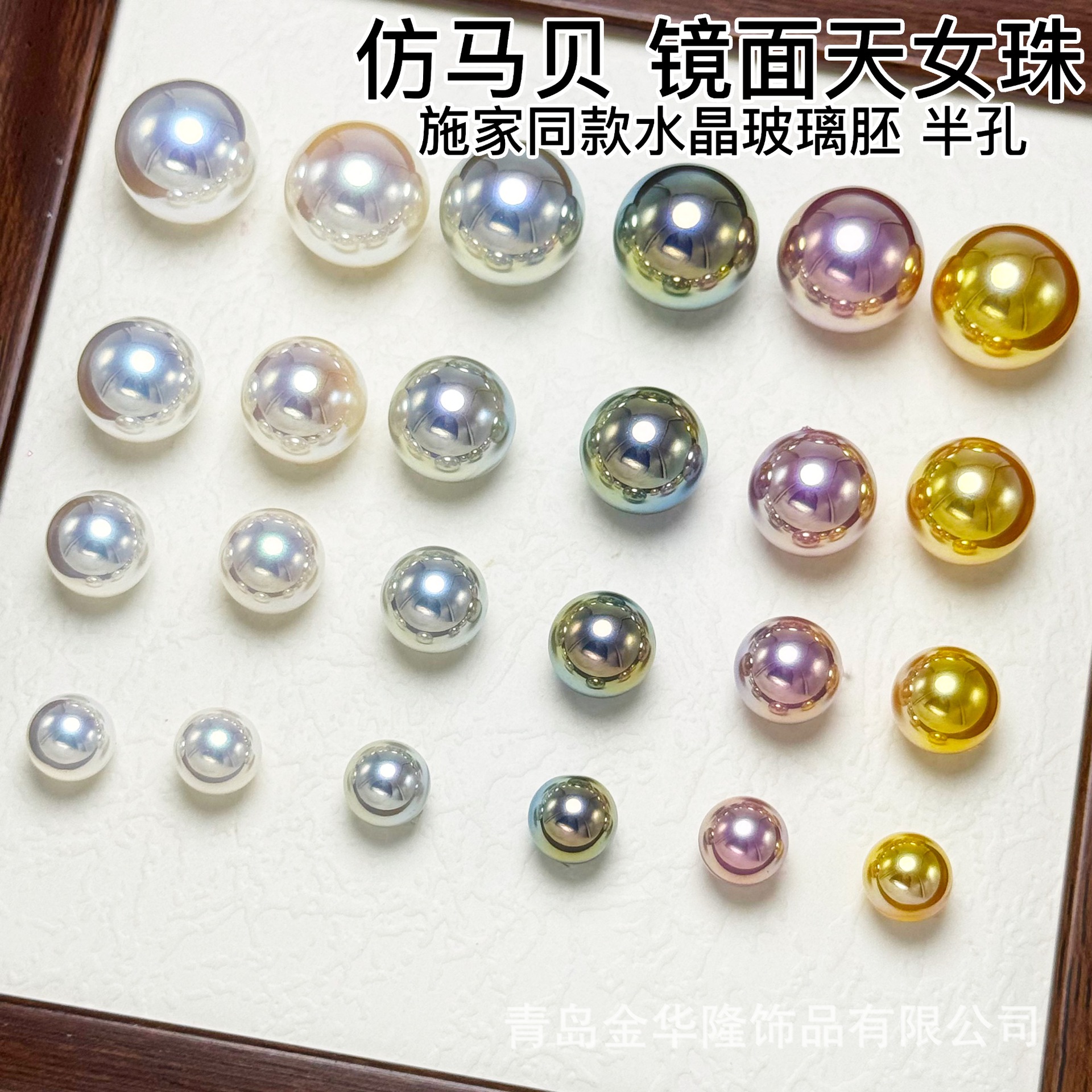 仿马贝半孔珍珠水晶玻璃天女珠炫彩施家珍珠圆珠耳饰吊坠diy配件