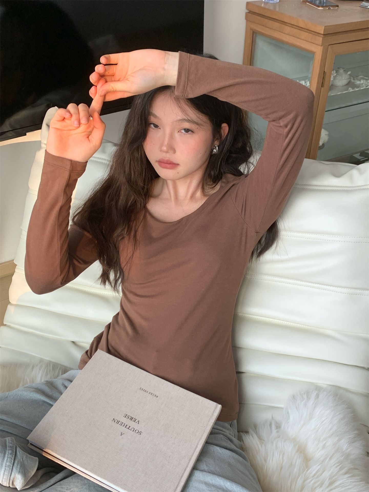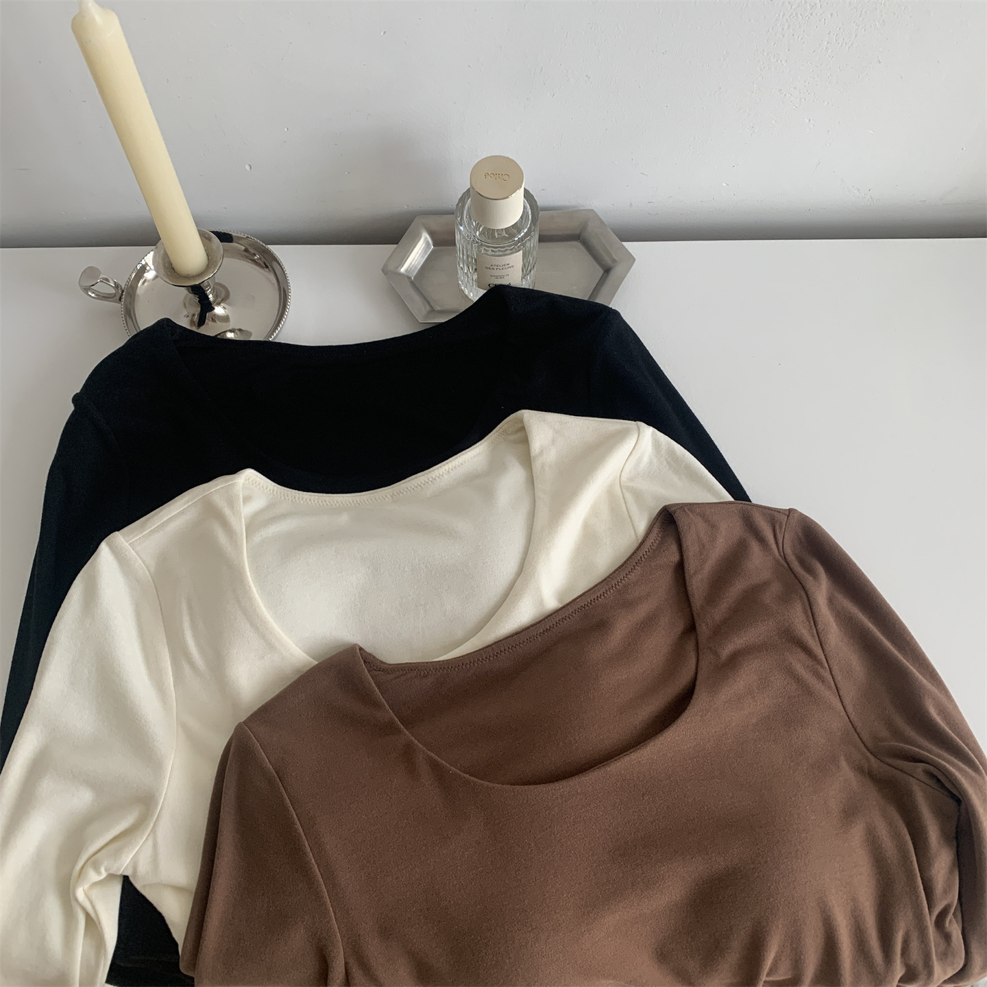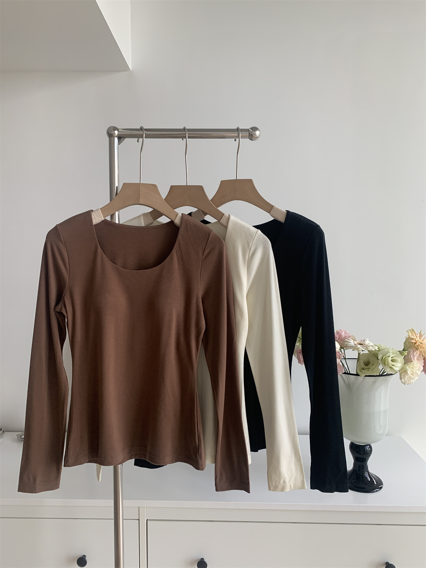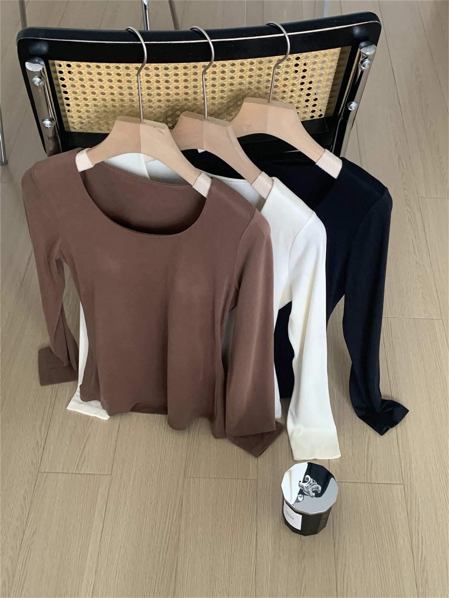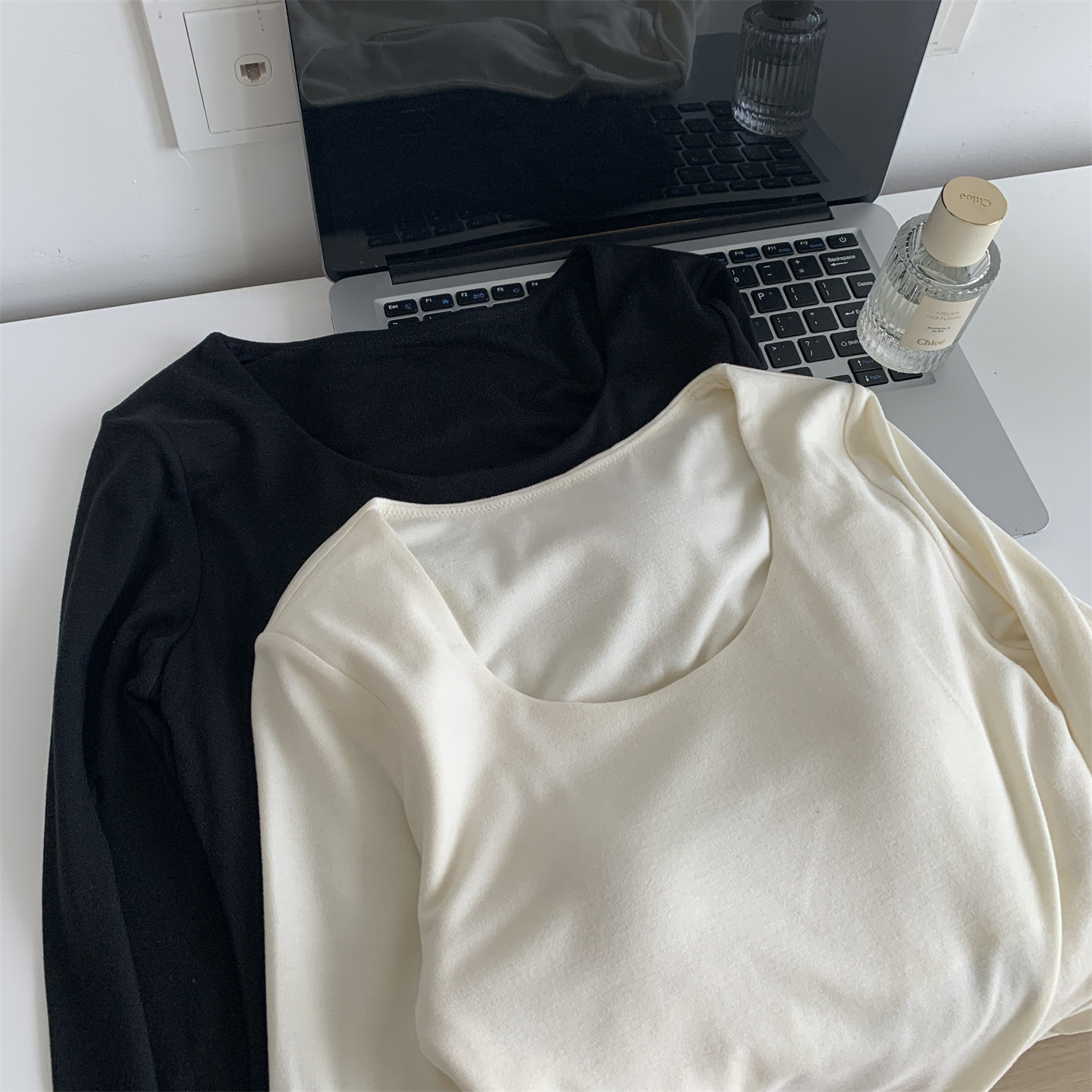 显瘦打底衫秋冬新款莫代尔正肩T恤长袖修身圆领西装内搭上衣羊绒