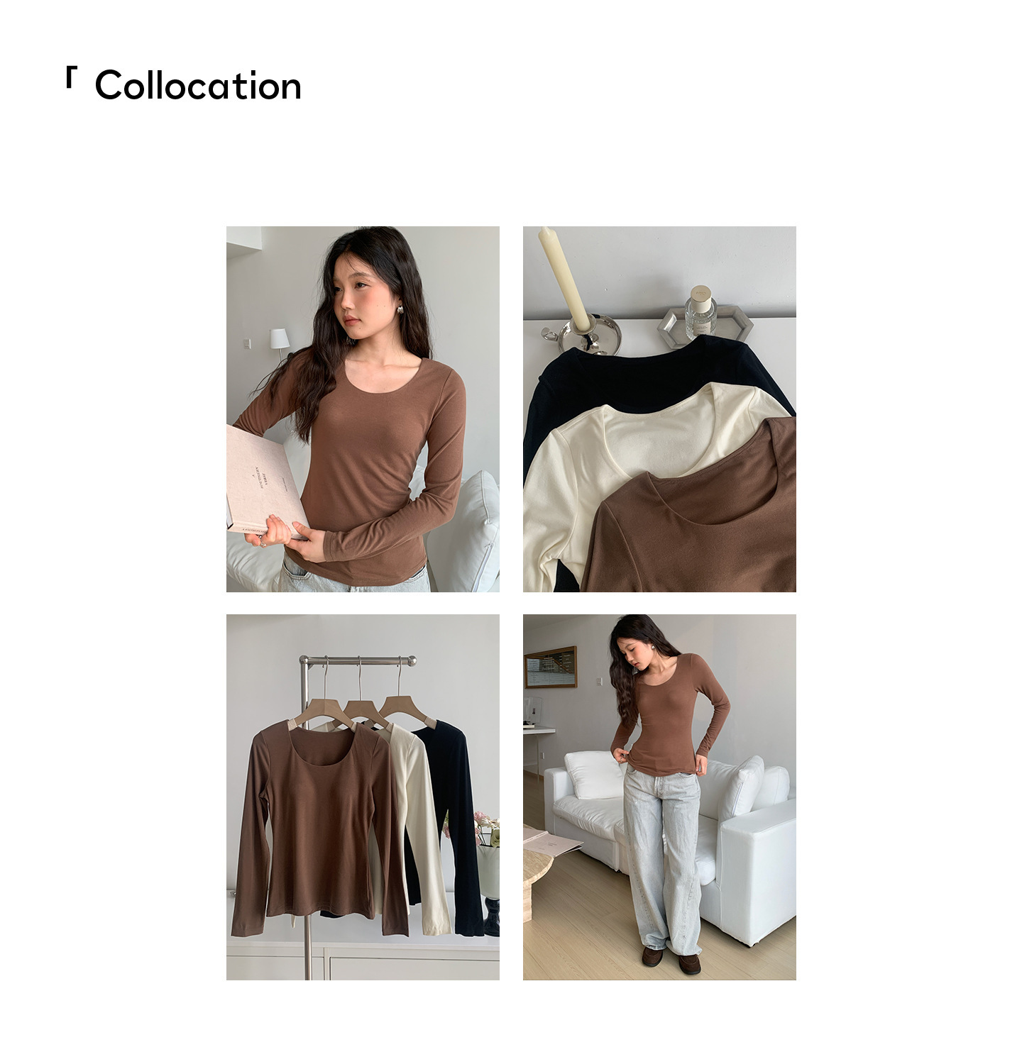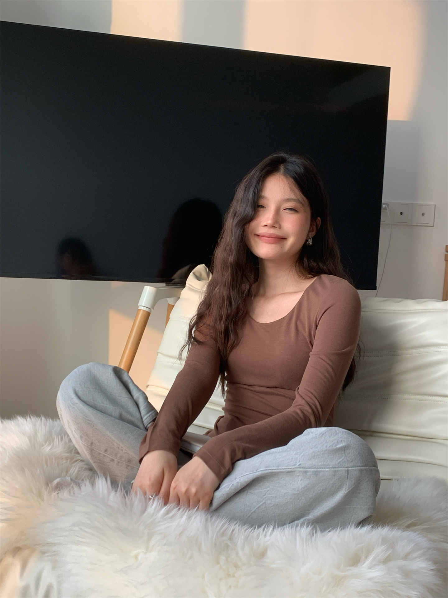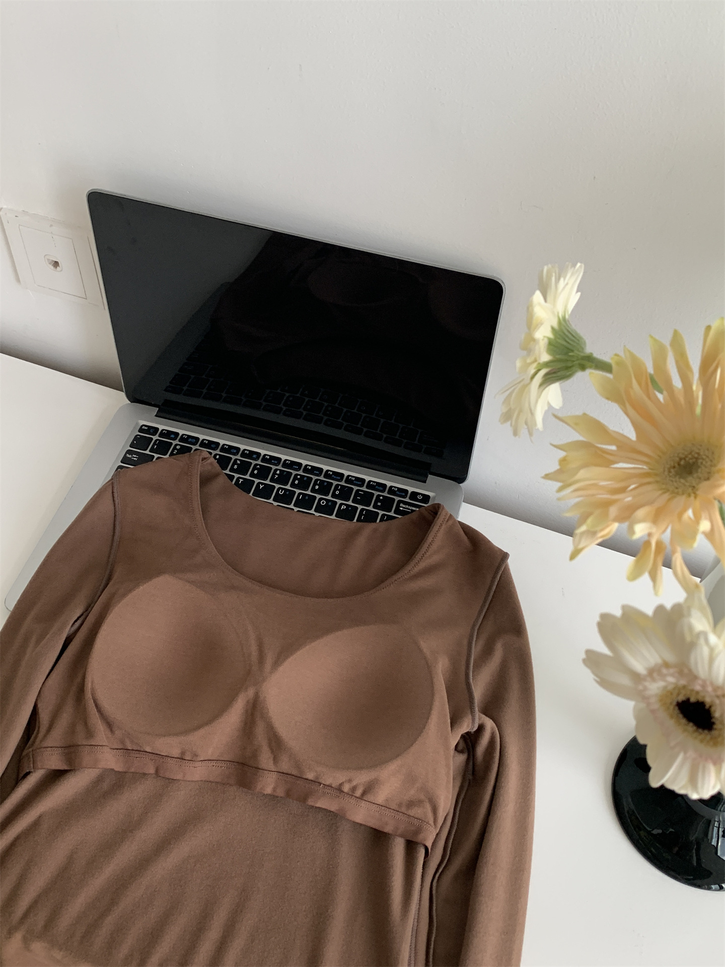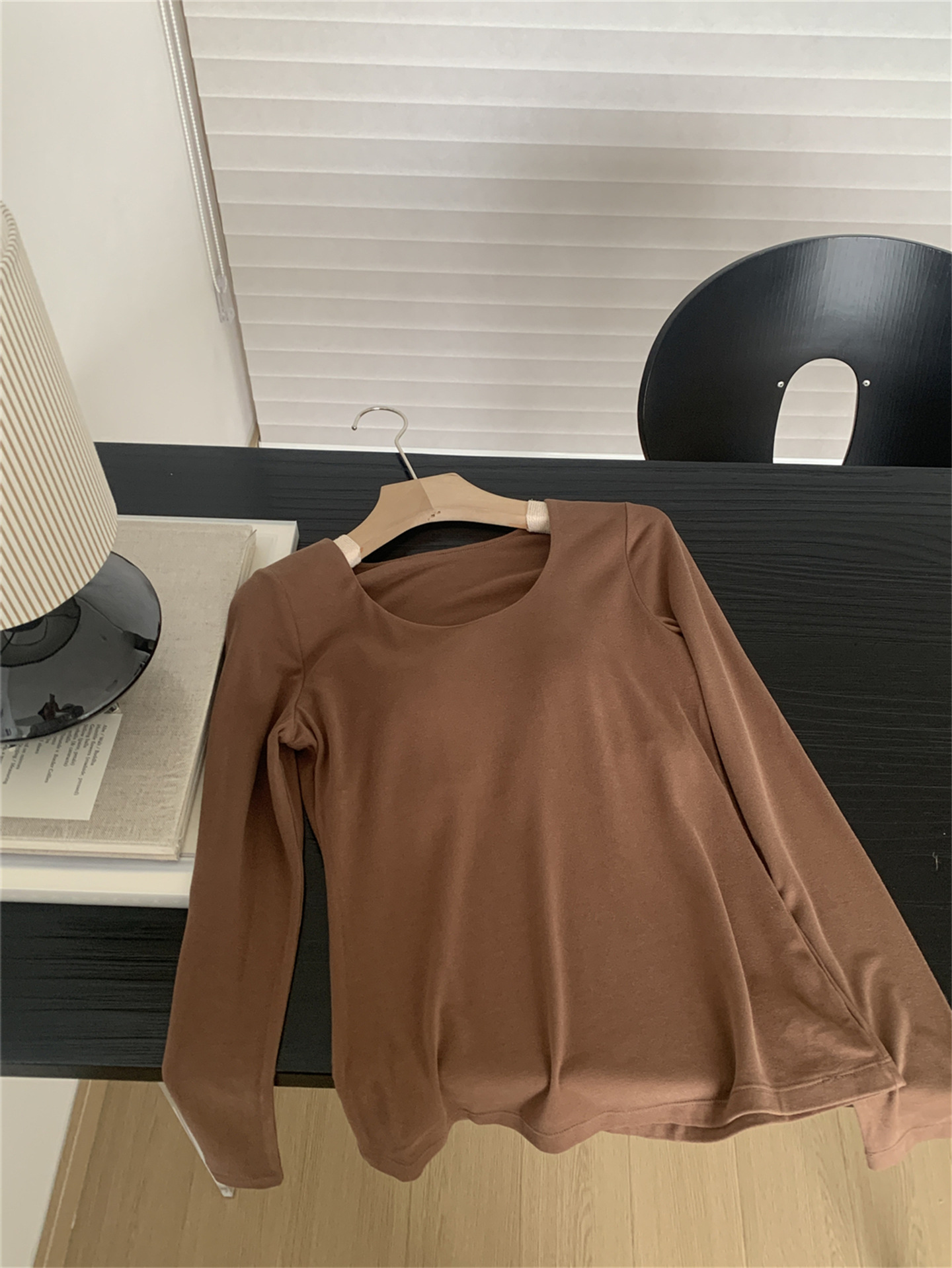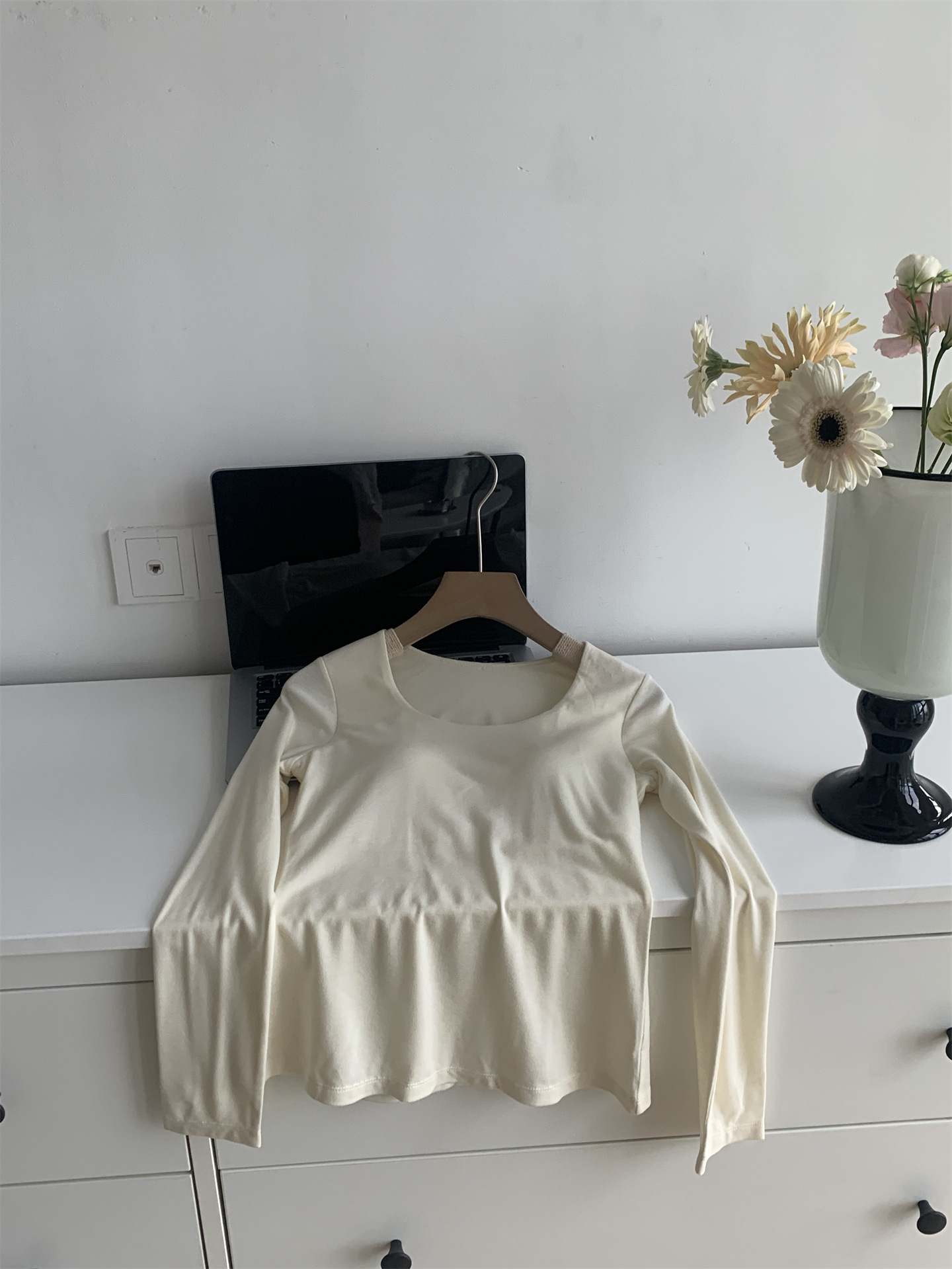 显瘦打底衫秋冬新款莫代尔正肩T恤长袖修身圆领西装内搭上衣羊绒