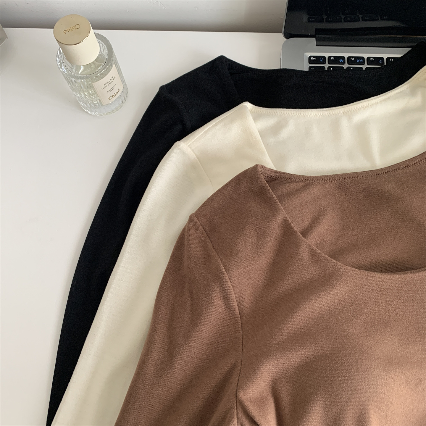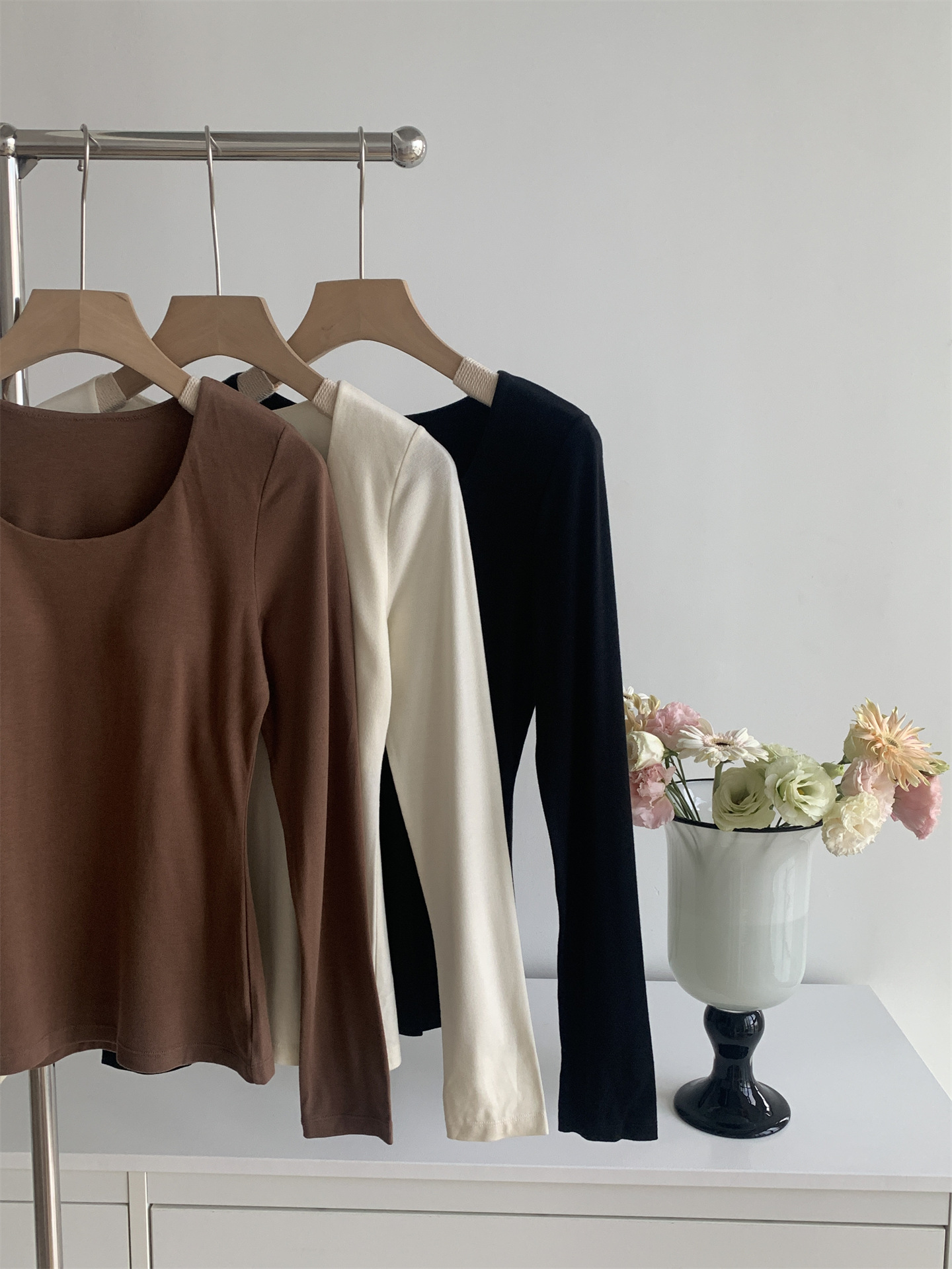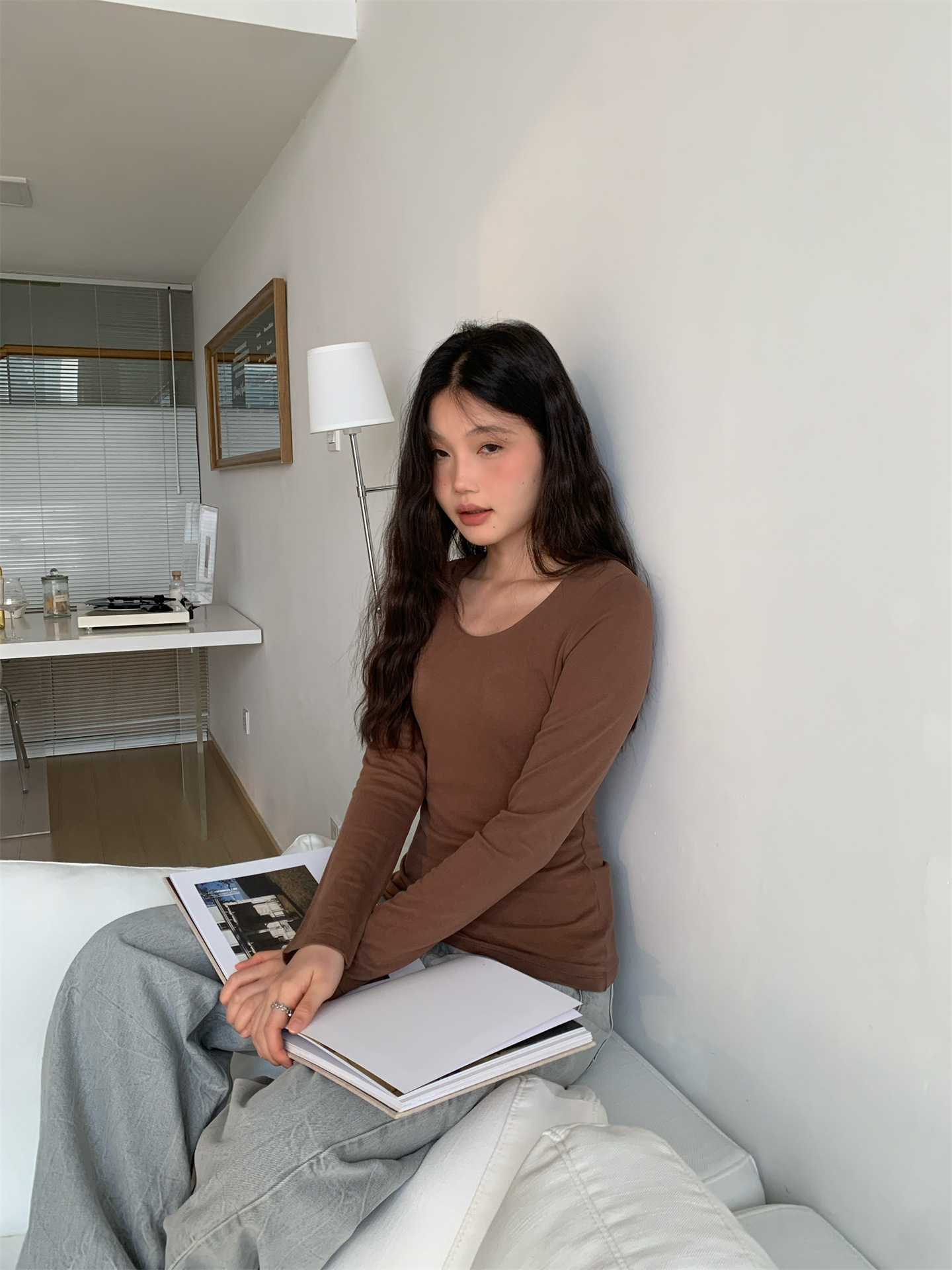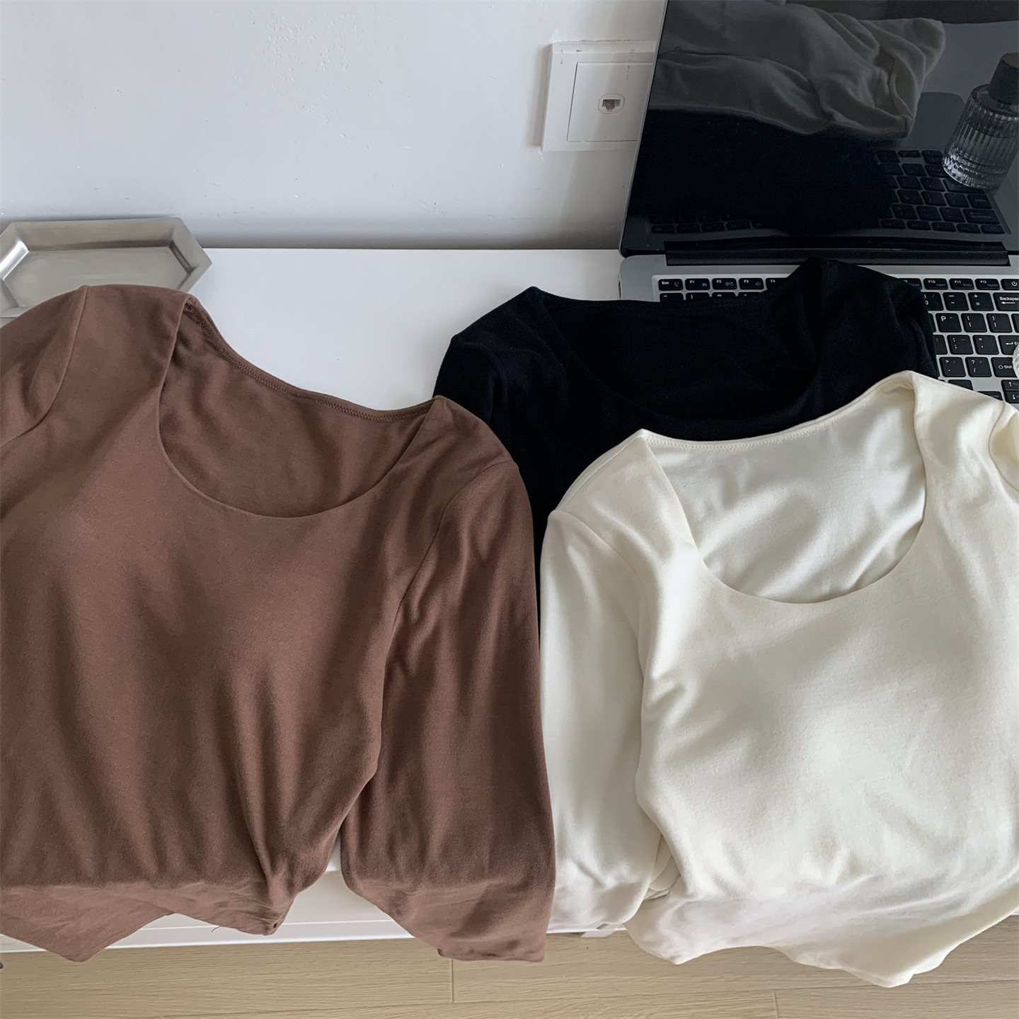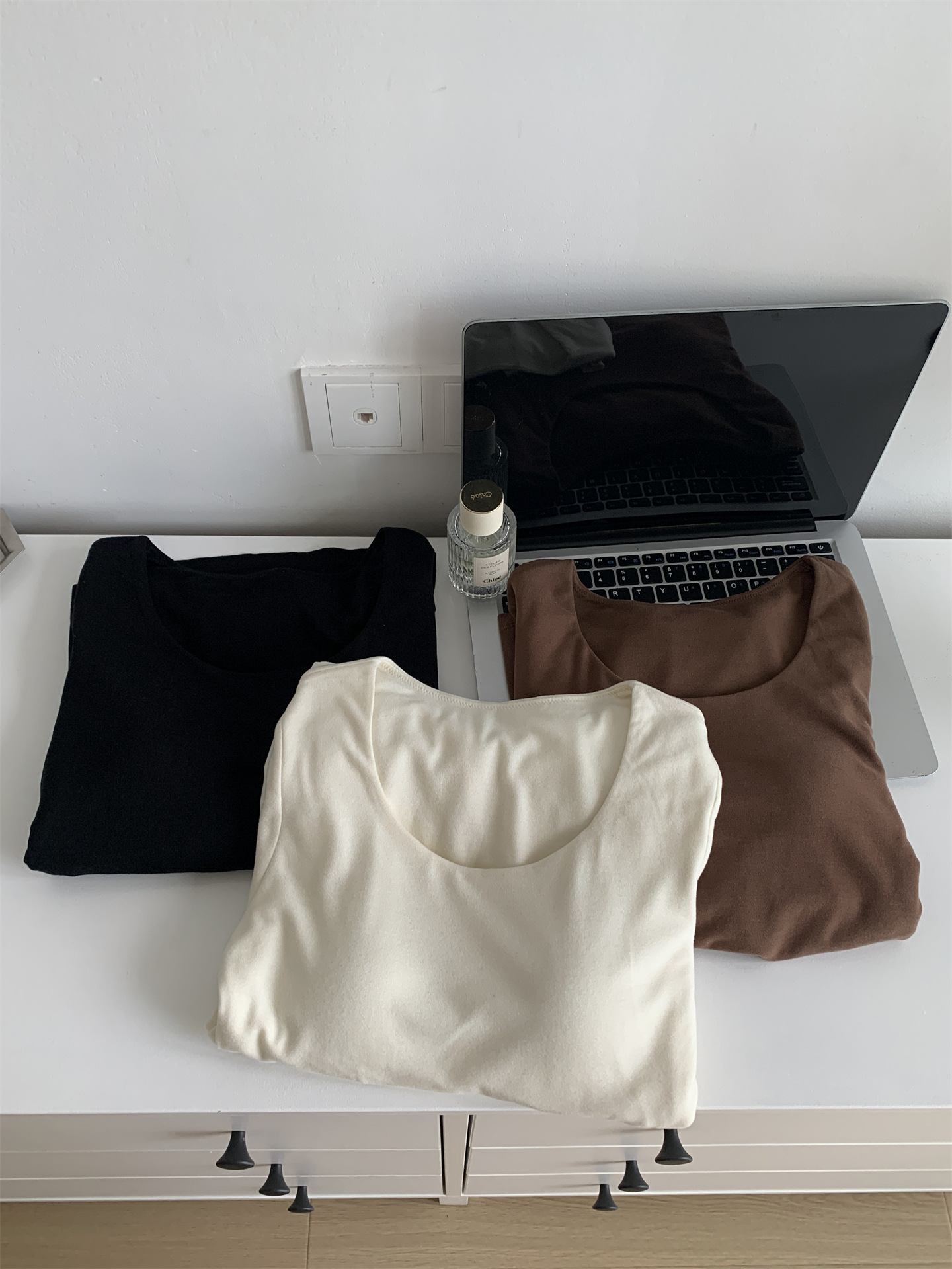 【ガラス色因】韓風がやせている低襟の底の服の超薄の大きい丸首の保温の下着は身を修めてやせている上着の女性を現します。