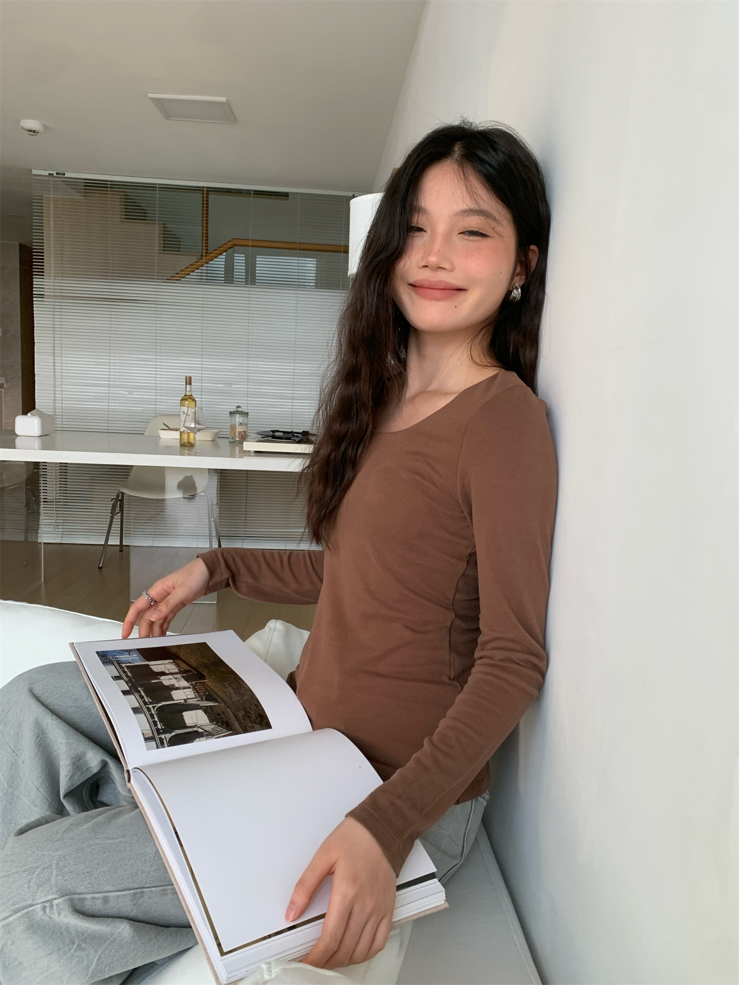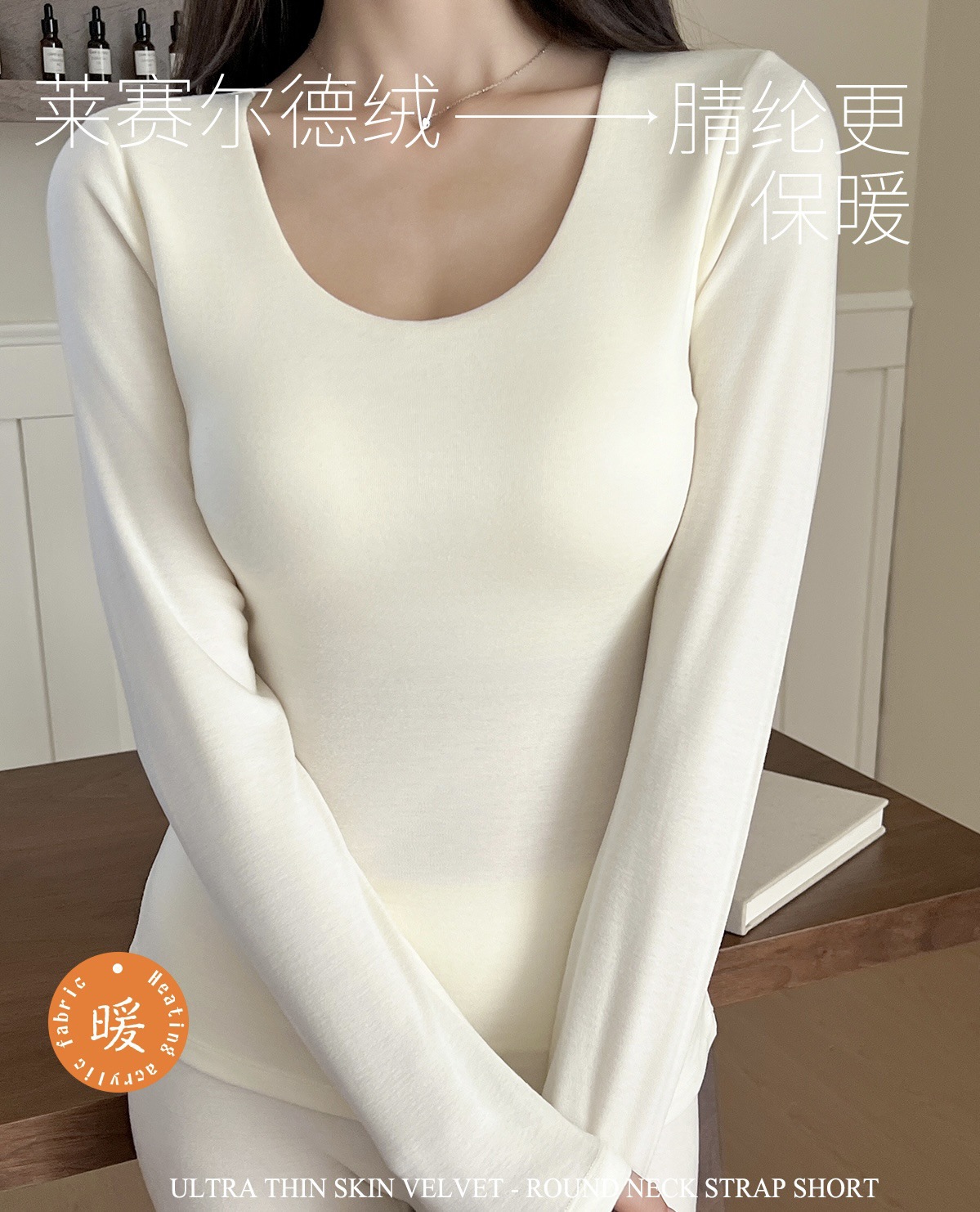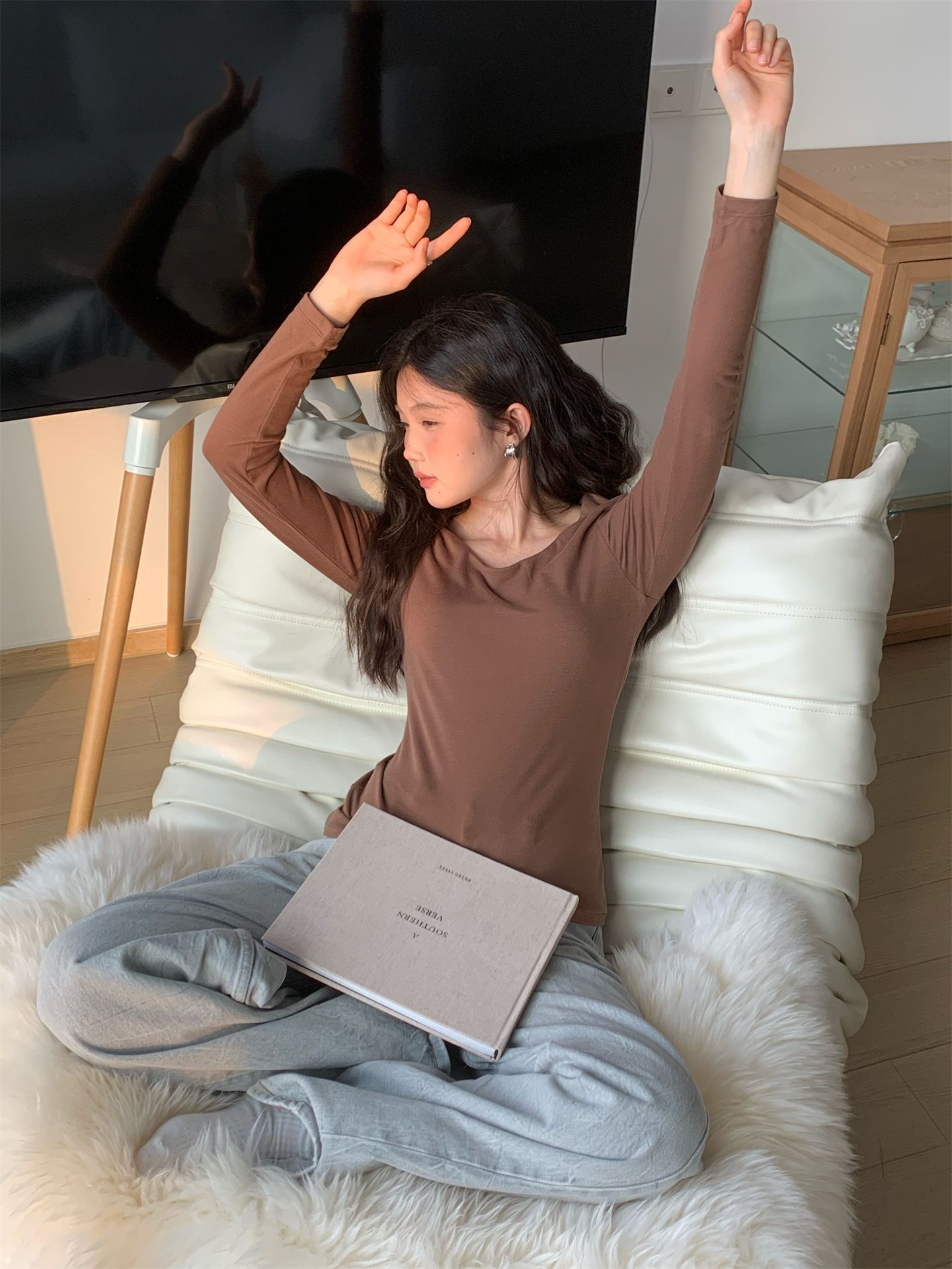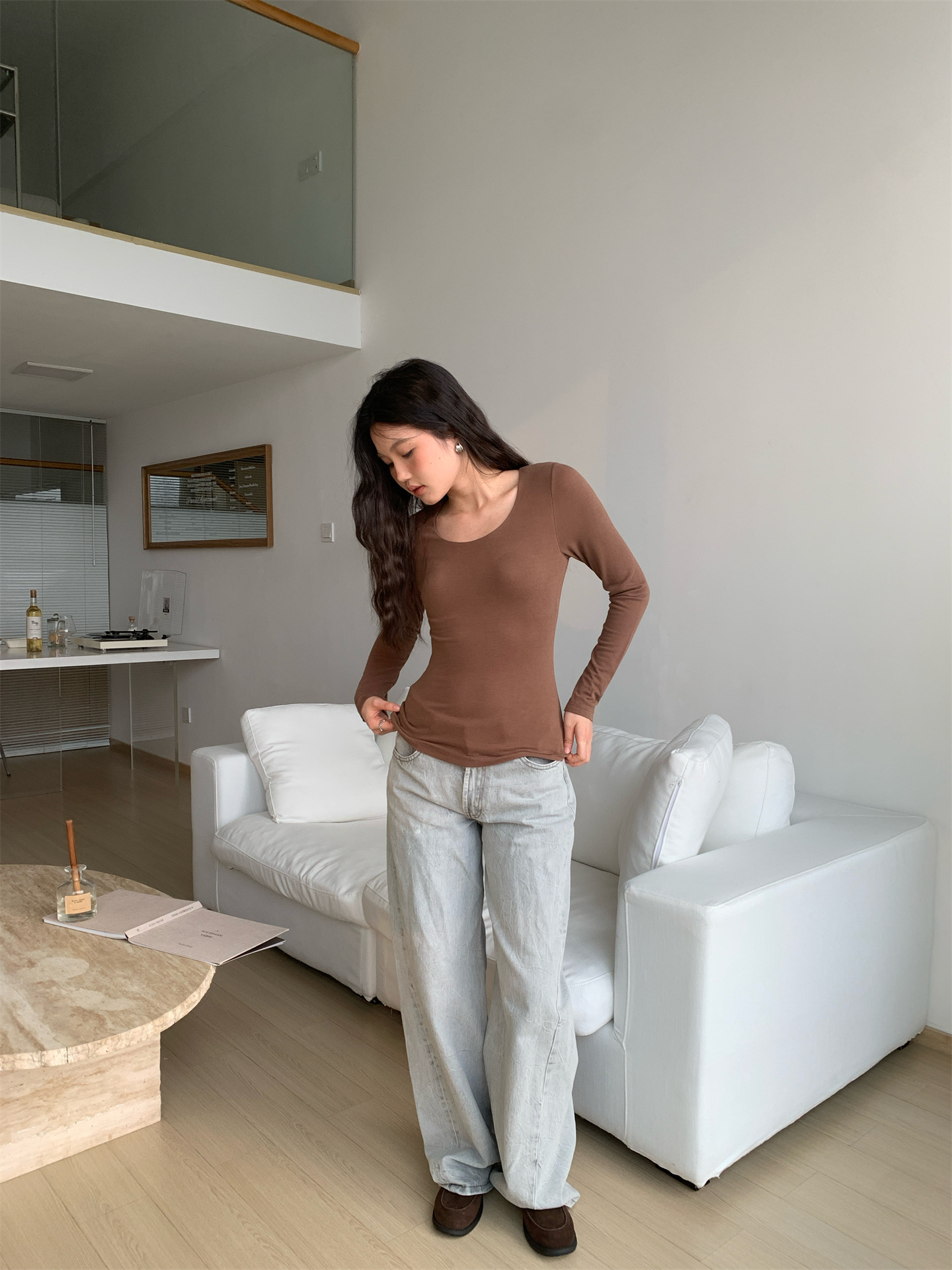 【ガラス色因】韓風がやせている低襟の底の服の超薄の大きい丸首の保温の下着は身を修めてやせている上着の女性を現します。
