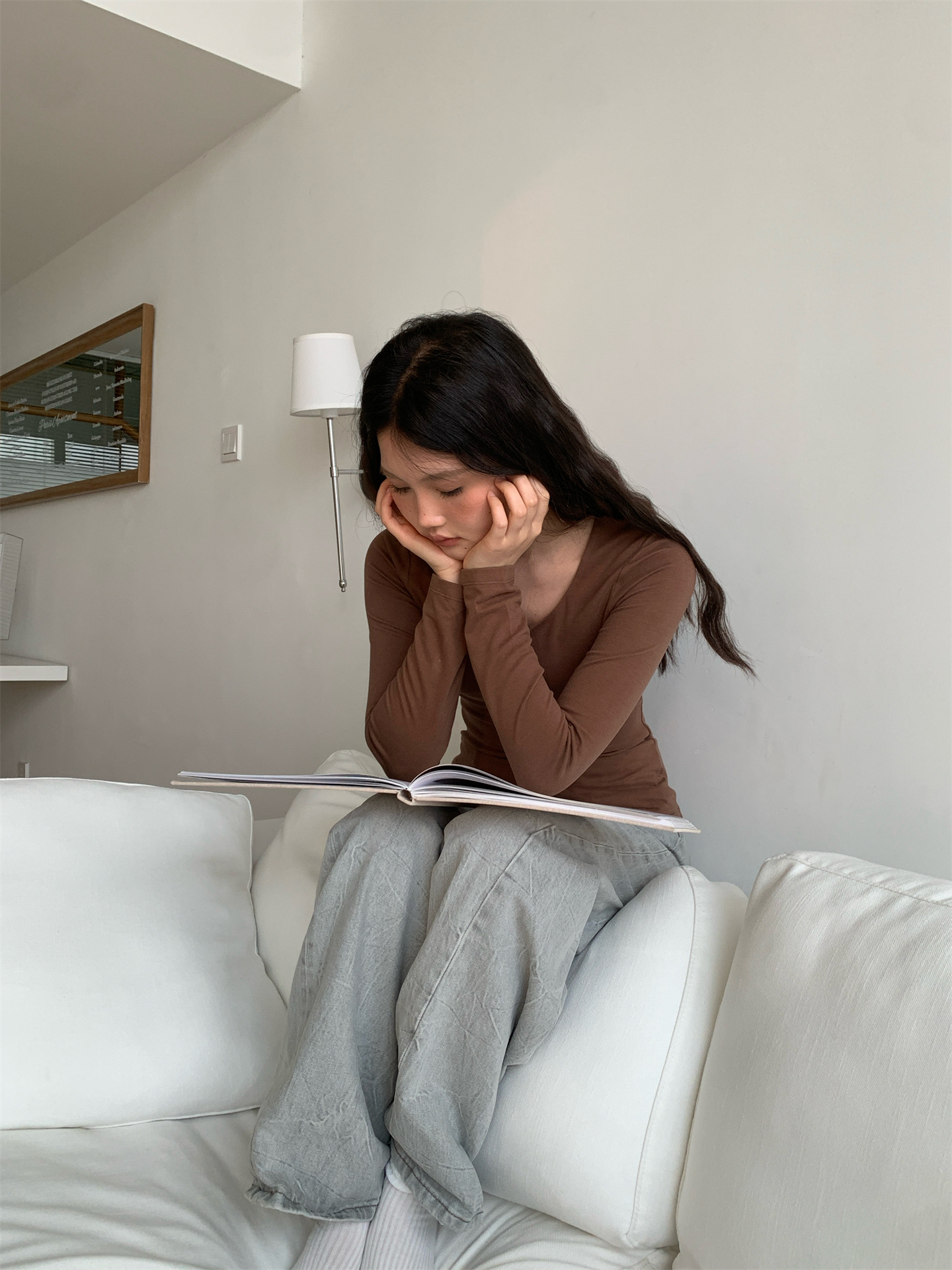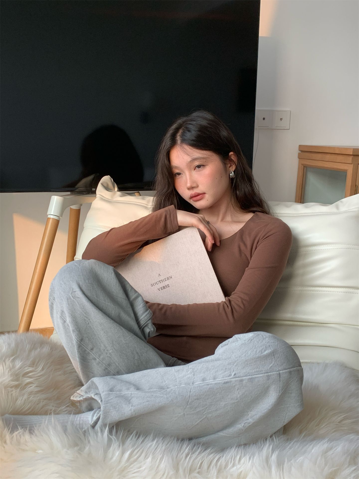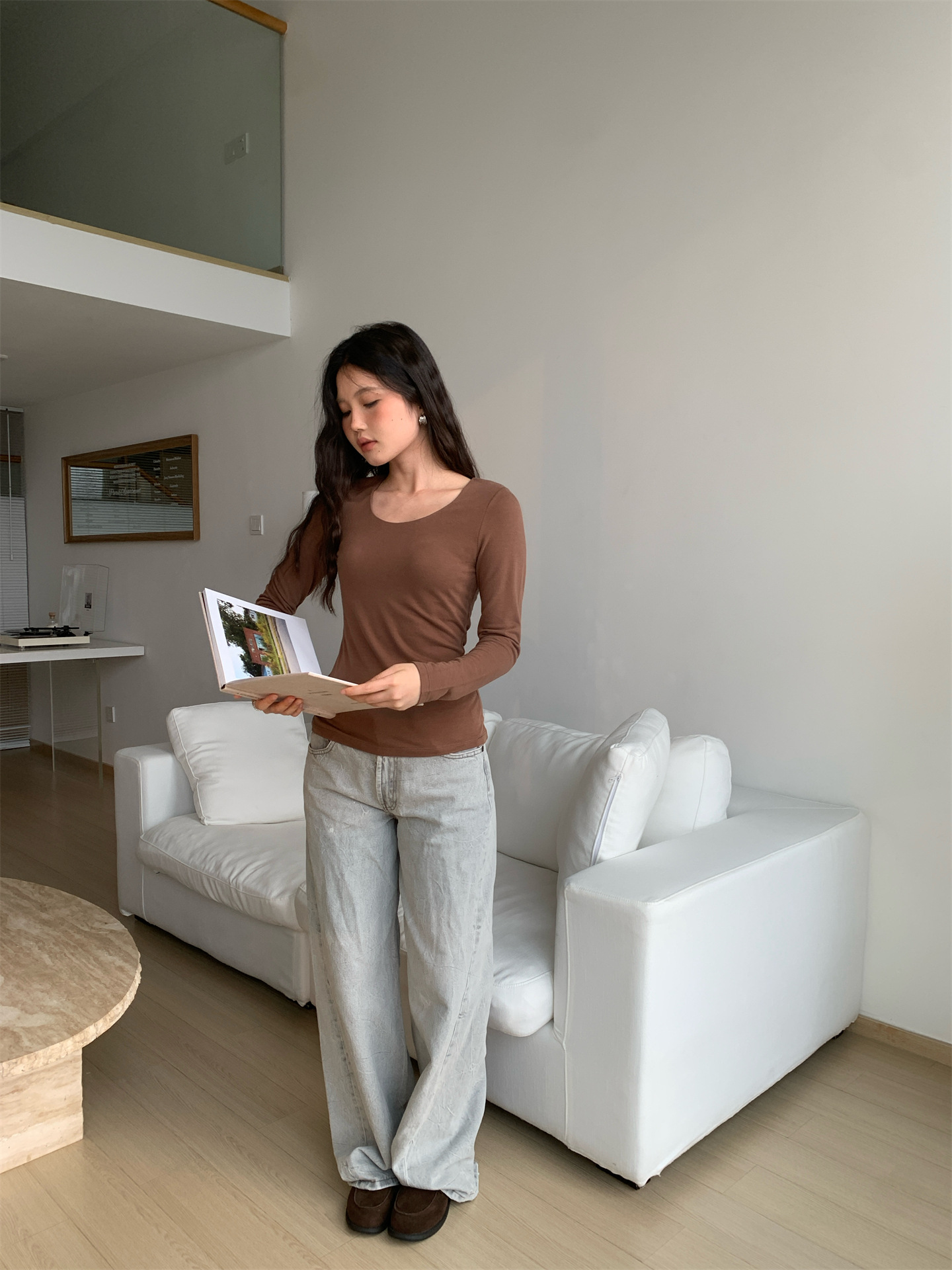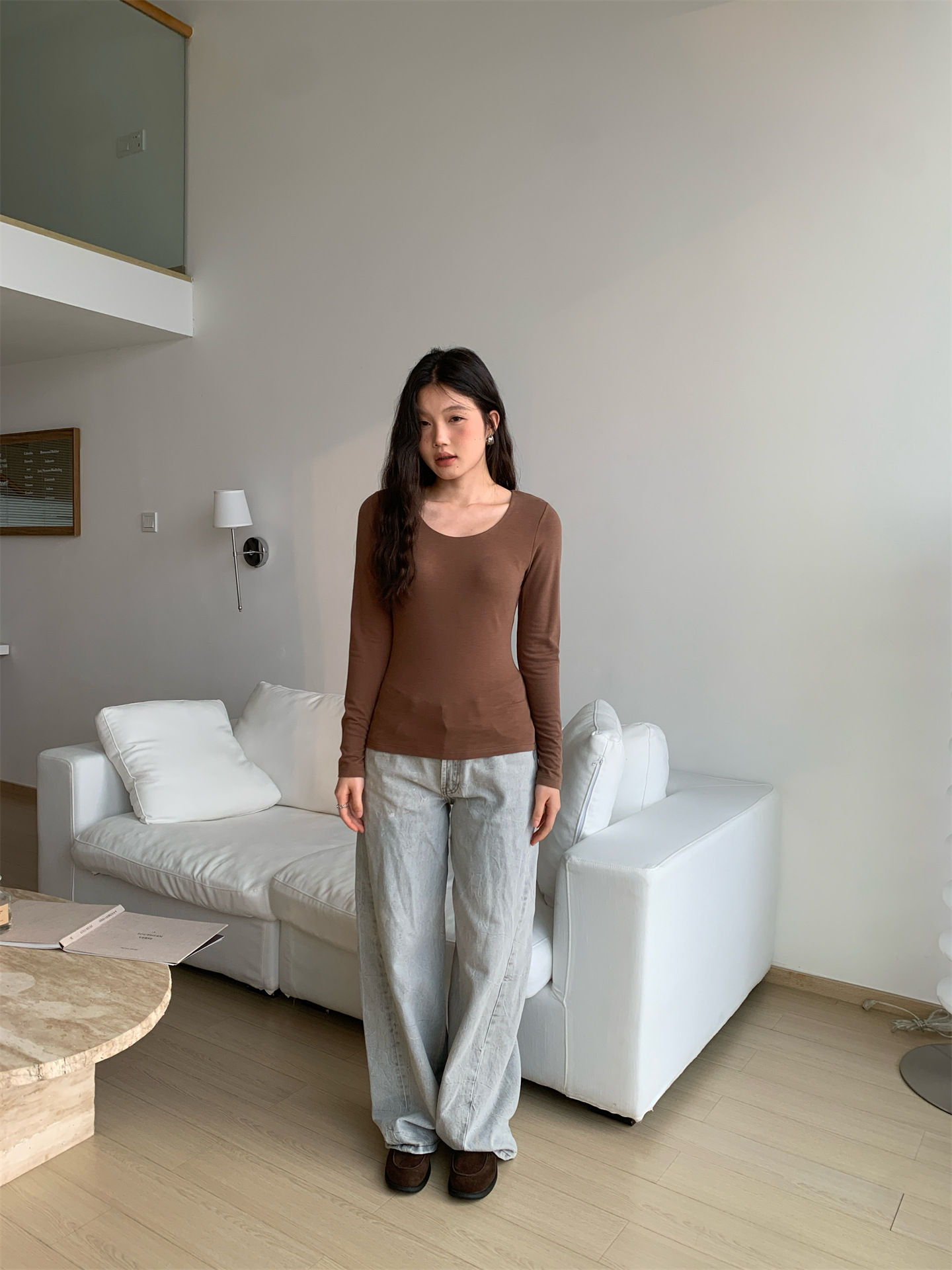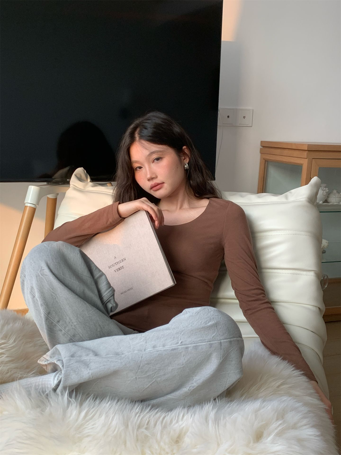 【ガラス色因】韓風がやせている低襟の底の服の超薄の大きい丸首の保温の下着は身を修めてやせている上着の女性を現します。