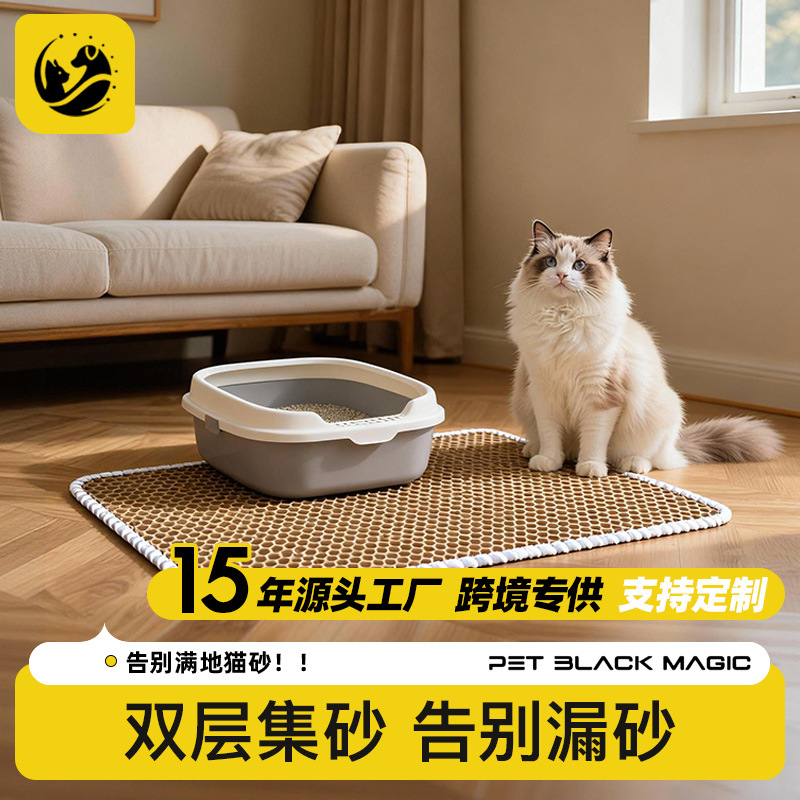 跨境代发超大猫砂垫防带出EAV猫砂盆防外溅垫子双层过滤控砂垫批