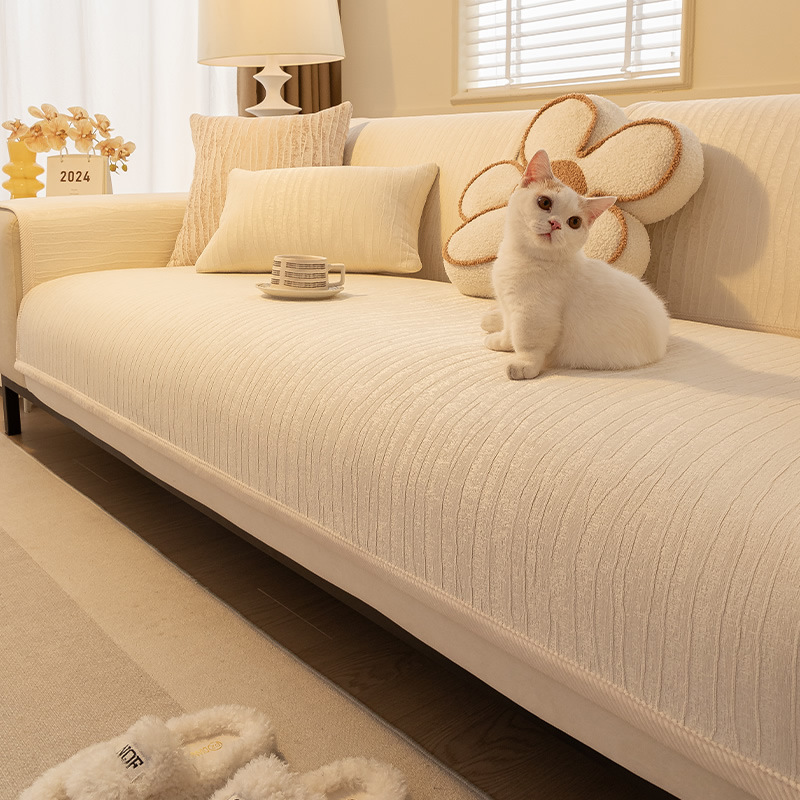 オールシーズン対応のクリームスタイルのソファカバー、豪華なエッジ、厚みのある滑り止め、猫の傷防止、シンプルで高級なソファクッション
